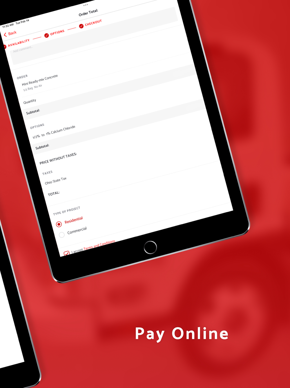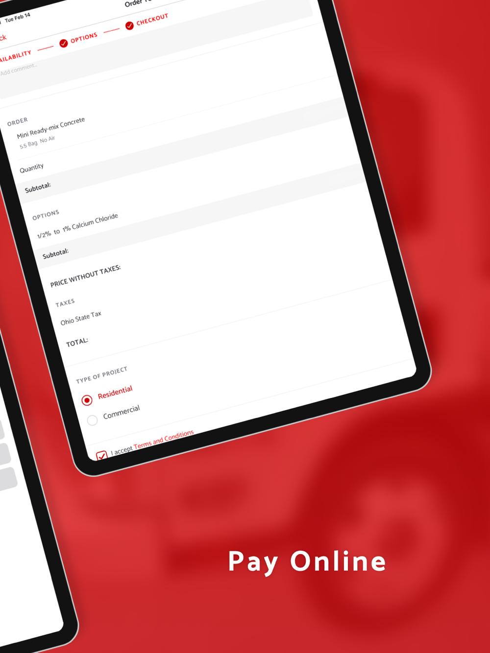 Download the app and order, track and manage your concrete deliveries in real-time. Ready Mix Go is now giving contractors the ability manage their orders, chat directly, view invoices, make payments and more - directly from the app!