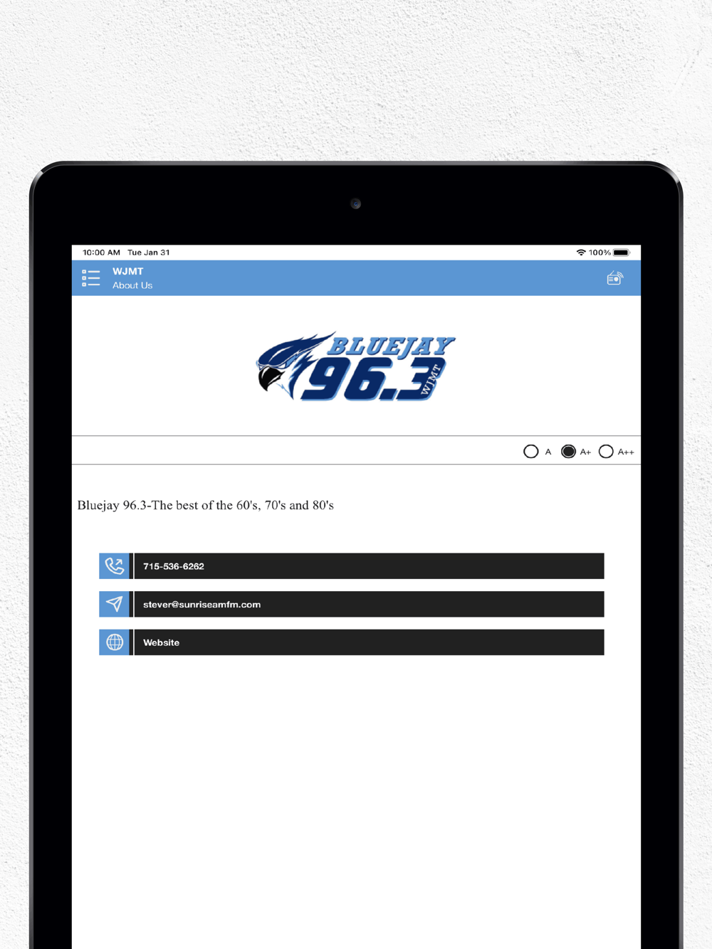 Bluejay 96.3 is Merrill's "Hometown Voice", and feature the biggest hits from the 60's,70's and 80's