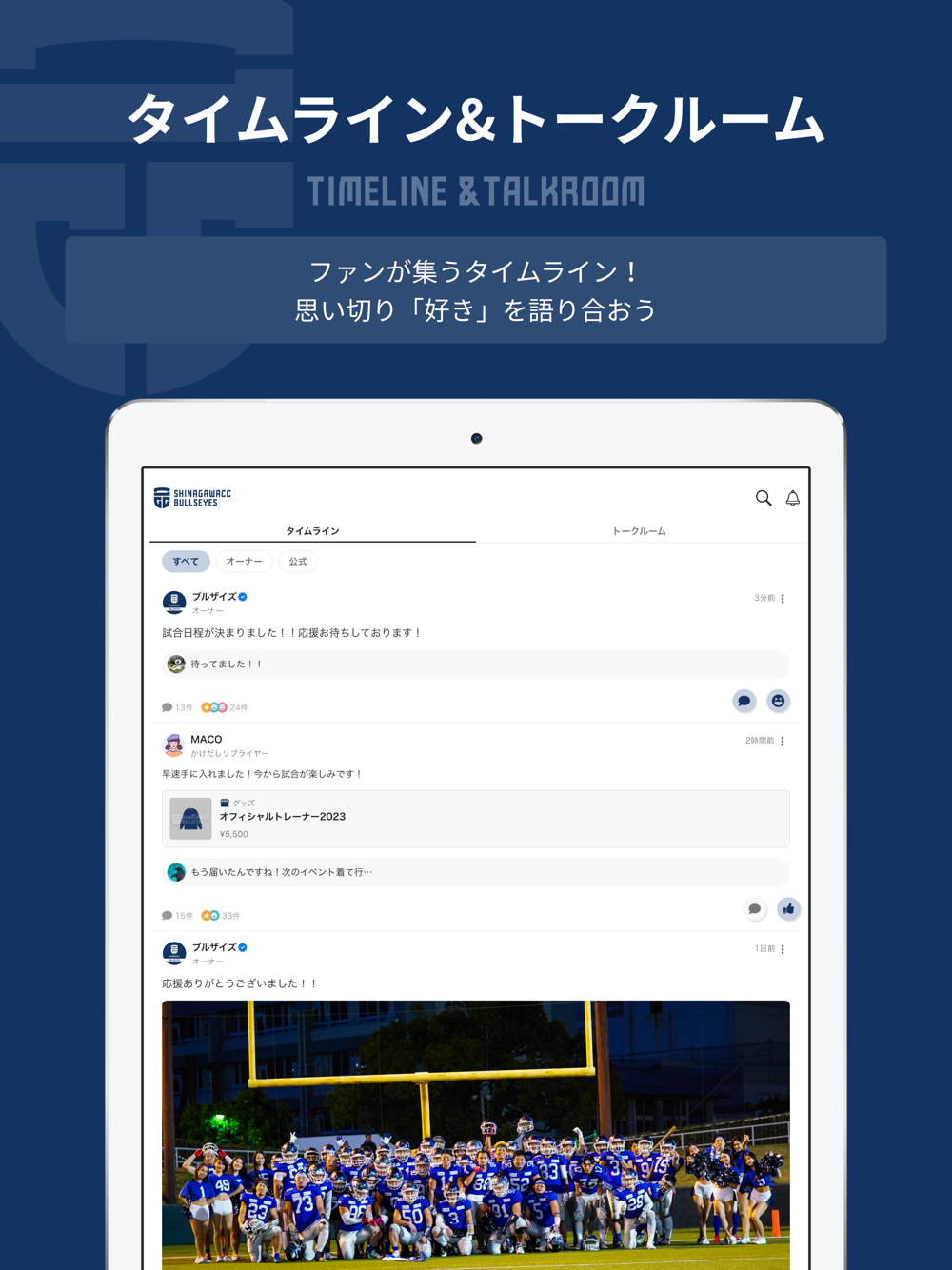 クラブやファンが好きな話題について話ができる場を作成できる、掲示板のような機能です。