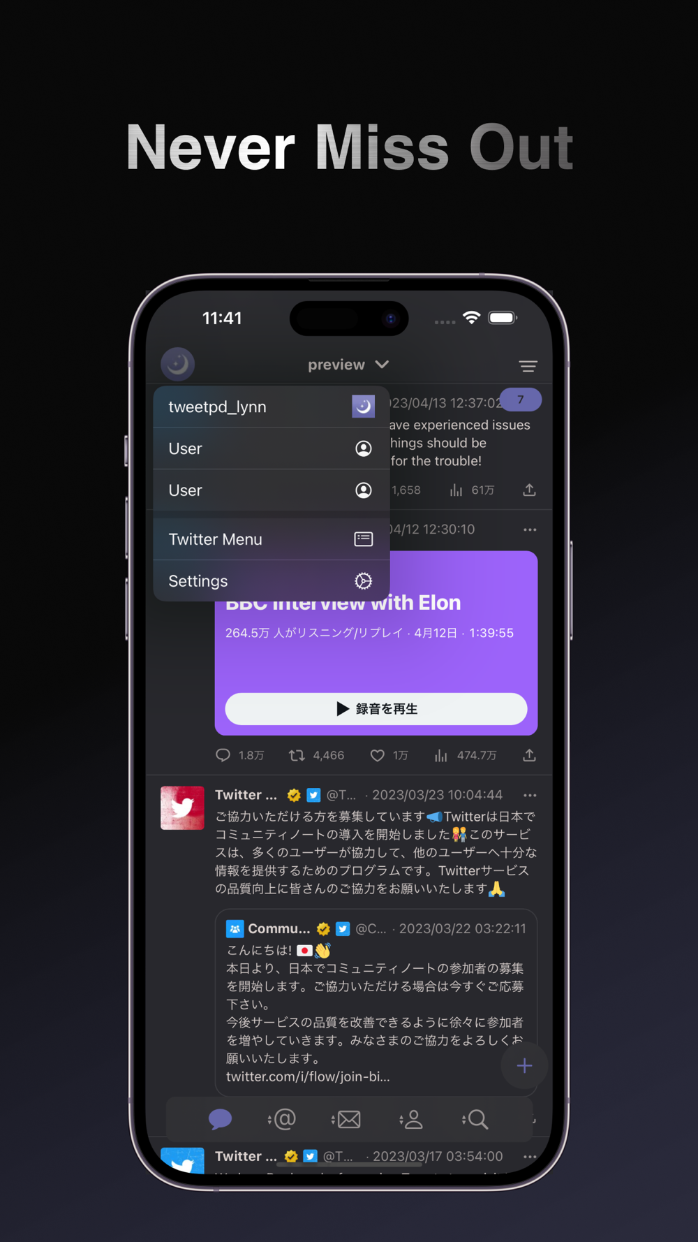 With our auto-translation feature, you can easily translate foreign tweets on the spot without needing a separate translation app! Save images and videos in bulk from tweets, revisit them while out and about, and even save on your data traffic!