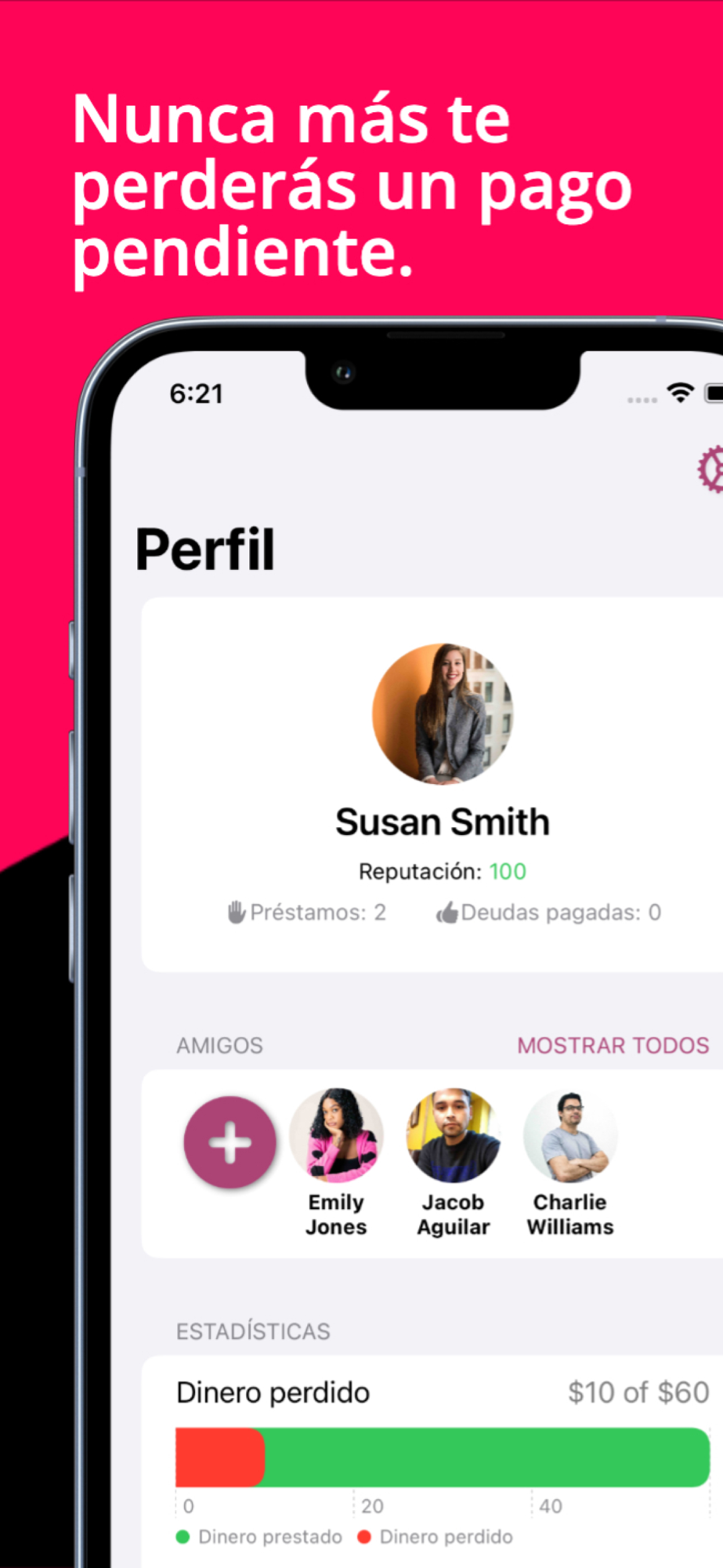 ¿Alguna vez has prestado dinero a un amigo y luego te has olvidado de cuánto fue o cuándo debían devolvértelo, y además, te incomoda cobrar? ¡No te preocupes más! Con Prend, tú y tus amigos reciben recordatorios automáticos y puedes llevar un registro preciso de tus préstamos. Si tus amigos no pagan, su reputación se verá afectada.