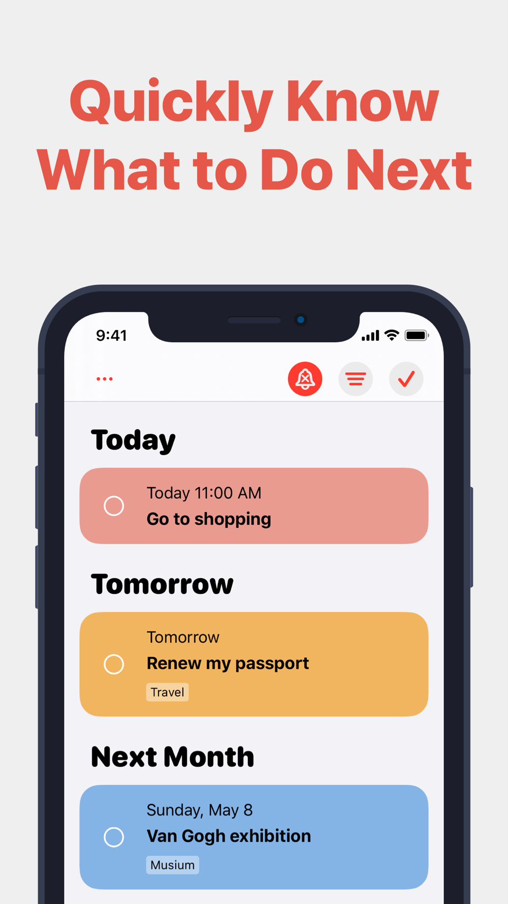 • Set alerts for tasks and it will notify you when the time comes