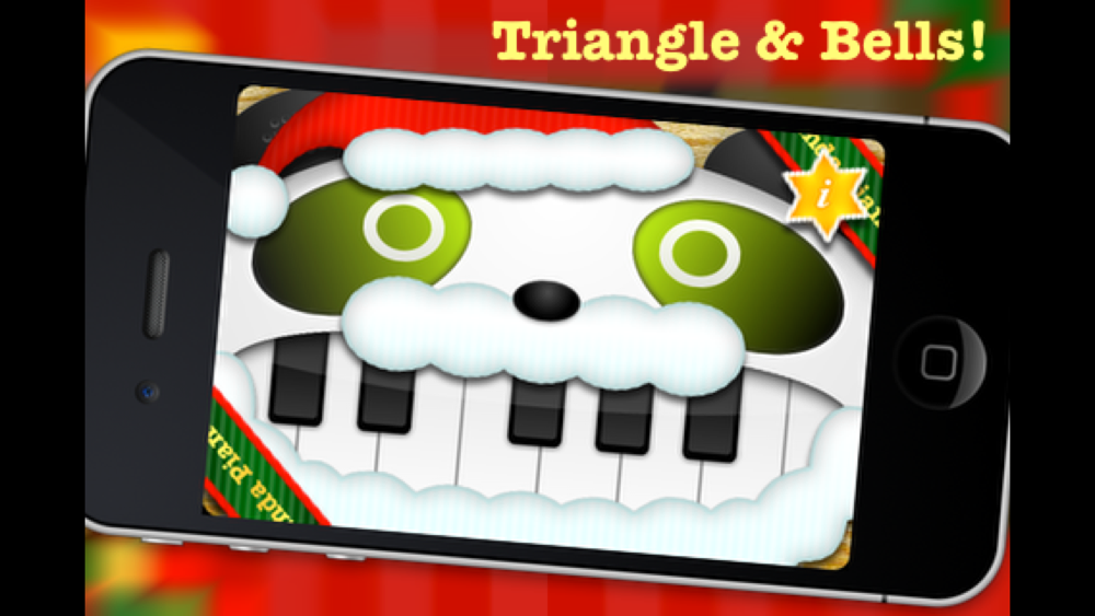 Merry Christmas from panda Santa! Eyes are triangle and bells. The nose is cymbals. Play a fun Christmas song!