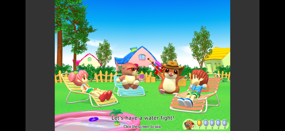 Face off with the rambunctious Hamham and his friends in the water pistol game.