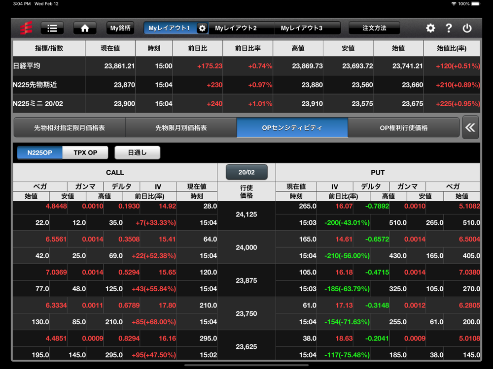日経225先物・miniの限月別価格表、OPセンシティビティ、OP権利行使価格リスト、国内・海外主要指標などが一覧できます。
