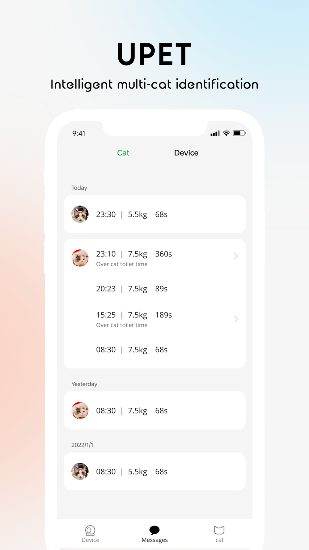 [Intelligent Multi-Cat Recognition] Through weight difference and AI intelligent recognition, cats can be accurately distinguished, and up to 6 different cats can be recognized, making message push and data management more accurate.