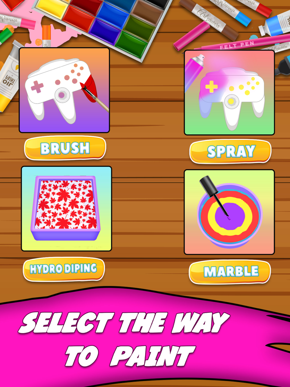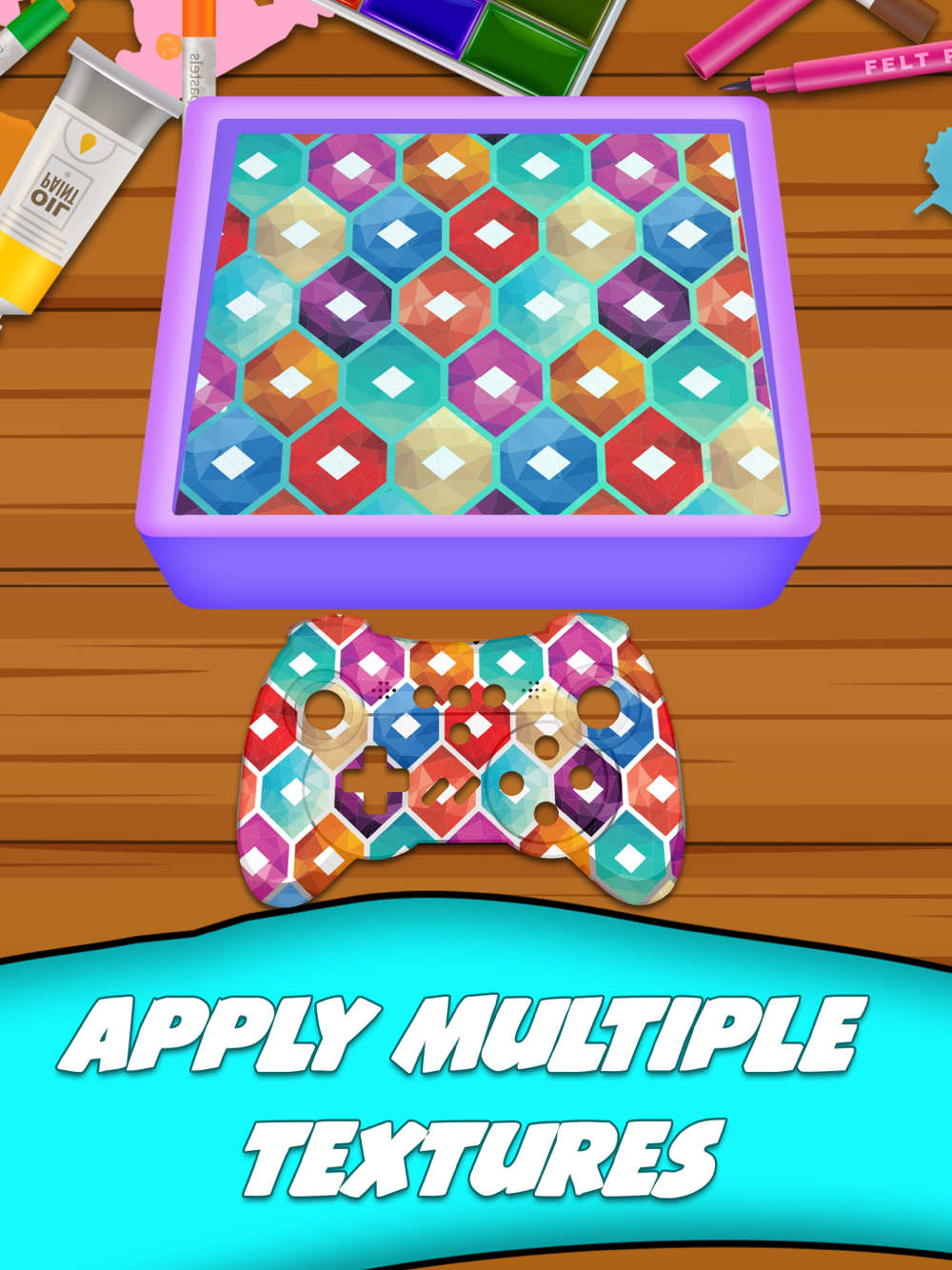 Splash some colors on joystick, Unleash your creative mind and design your DIY controller in tie dye phone case games. Get some inspiration from tie dye games & show creativity by designing your joystick easily. This printing game will allow you to DIY design and develop new cover ideas and impress people with your imagination of drawing master. Within seconds you can get new printed custom joystick in your hands. Don't worry and splash DIY colors on your gamepad with spray paint in tie dye phone case games.