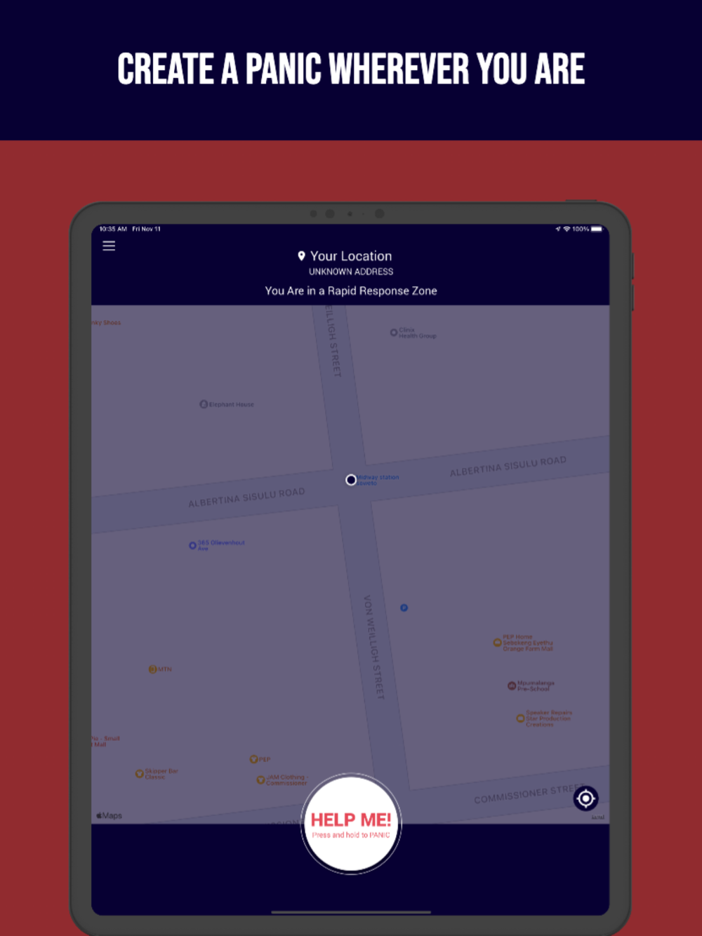 The MiX Emergency Response app allows you to panic when you are in an emergency and will notify the closest responder to attend to your situation.