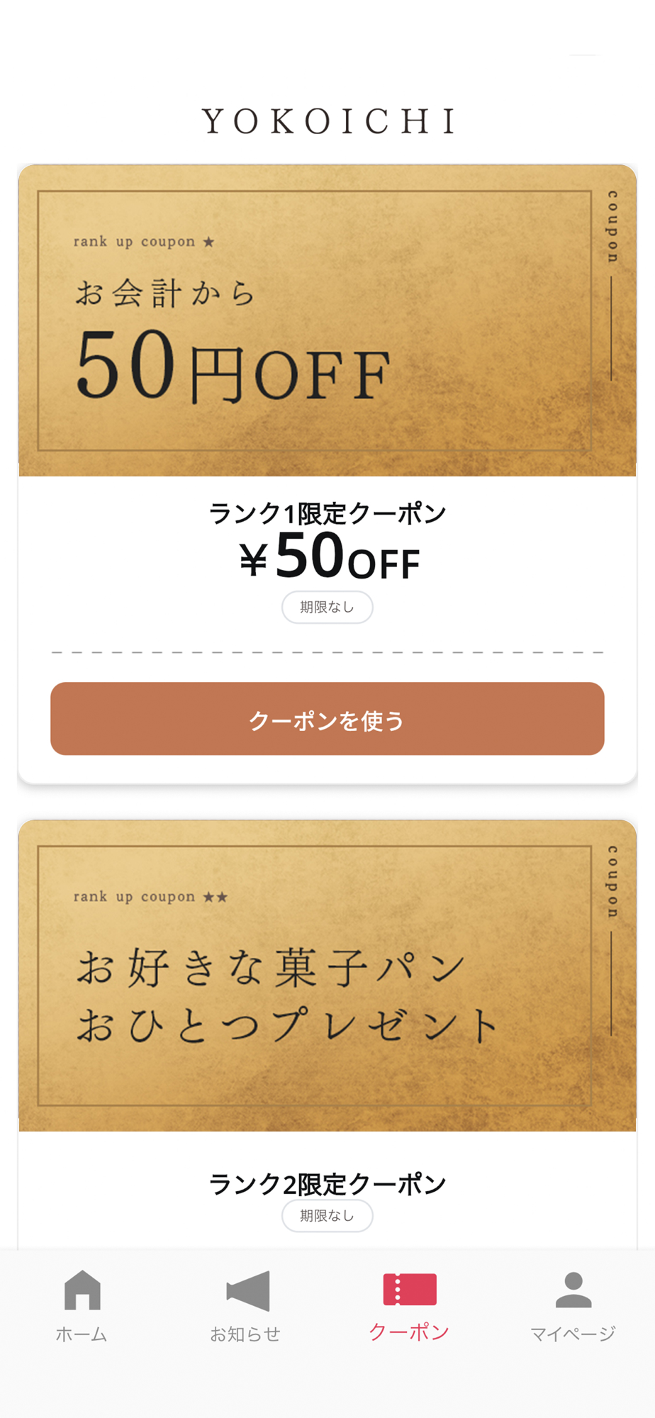 クーポンをレジで見せると割引、その他の特典を得ることが出来ます。