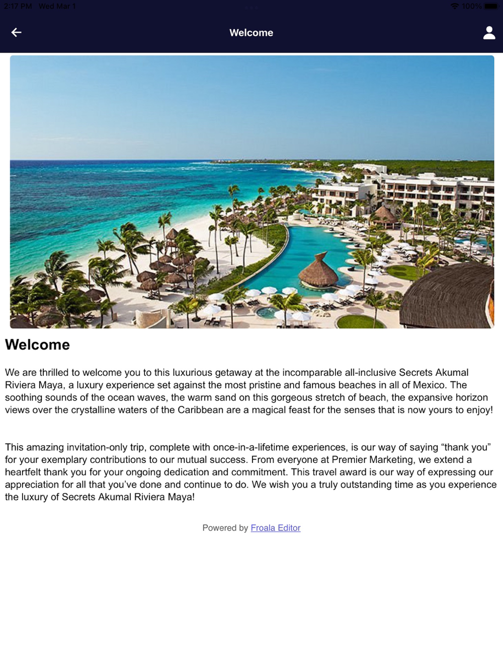 Welcome to the Premier Producers Convention event app! This app will be your information guide during the trip! We look forward to seeing you at Secrets Akumal Riviera Maya!
