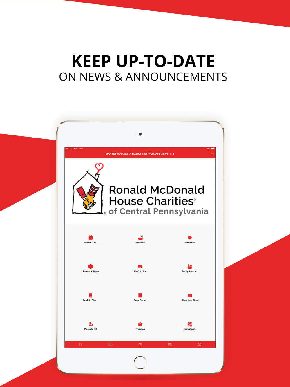 RMHC-CP provides comfort and support to families as their children receive medical care at Penn State Health Children’s Hospital. We offer clean, modern guest rooms, 2 fully stocked kitchens, dining rooms, living rooms and play areas. We provide dinner daily and are always ready with a listening ear.