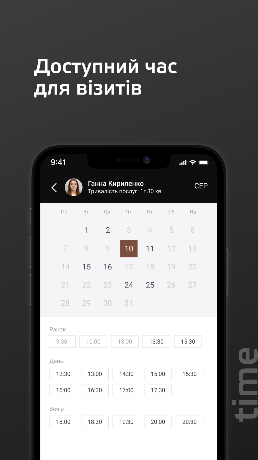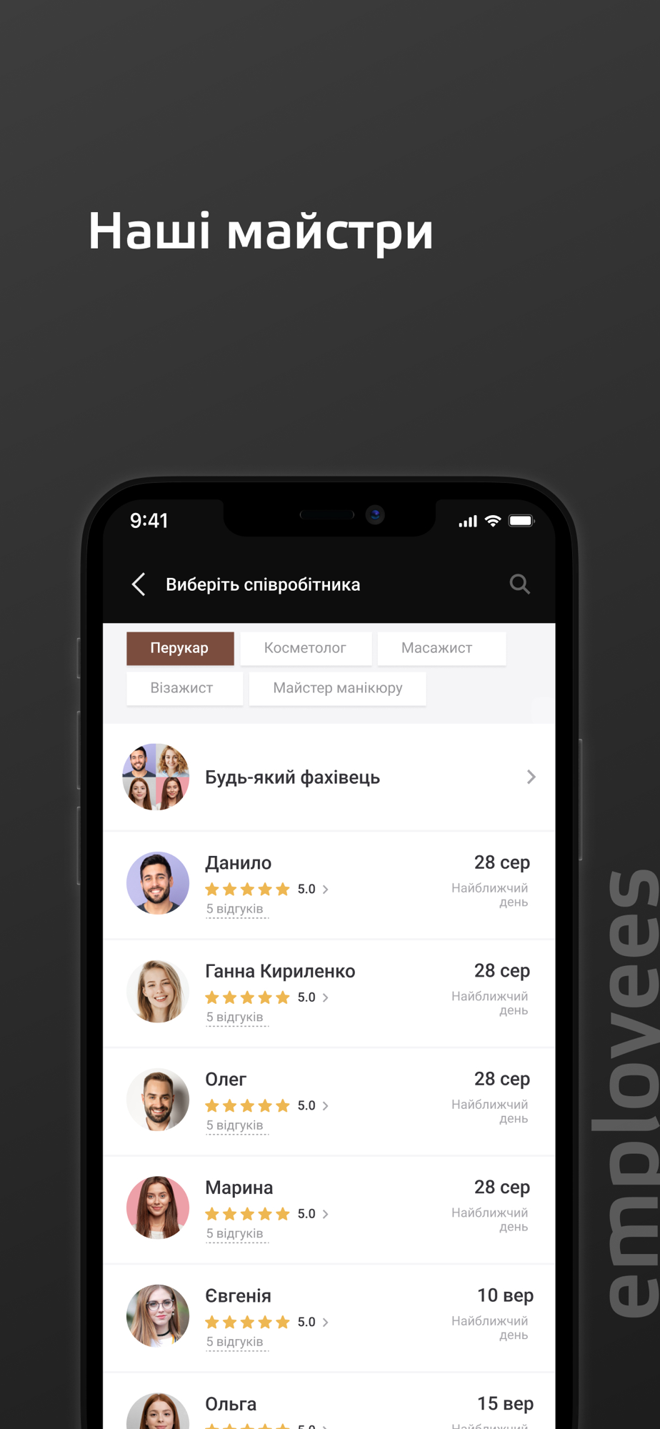Записуйтесь онлайн коли вам зручно, переглядайте інформацыю про улюблених майстрів, а також отримуйте нагадування про заплановані візити. Зможемо виконати побажання навіть найвимогливішого клієнта.