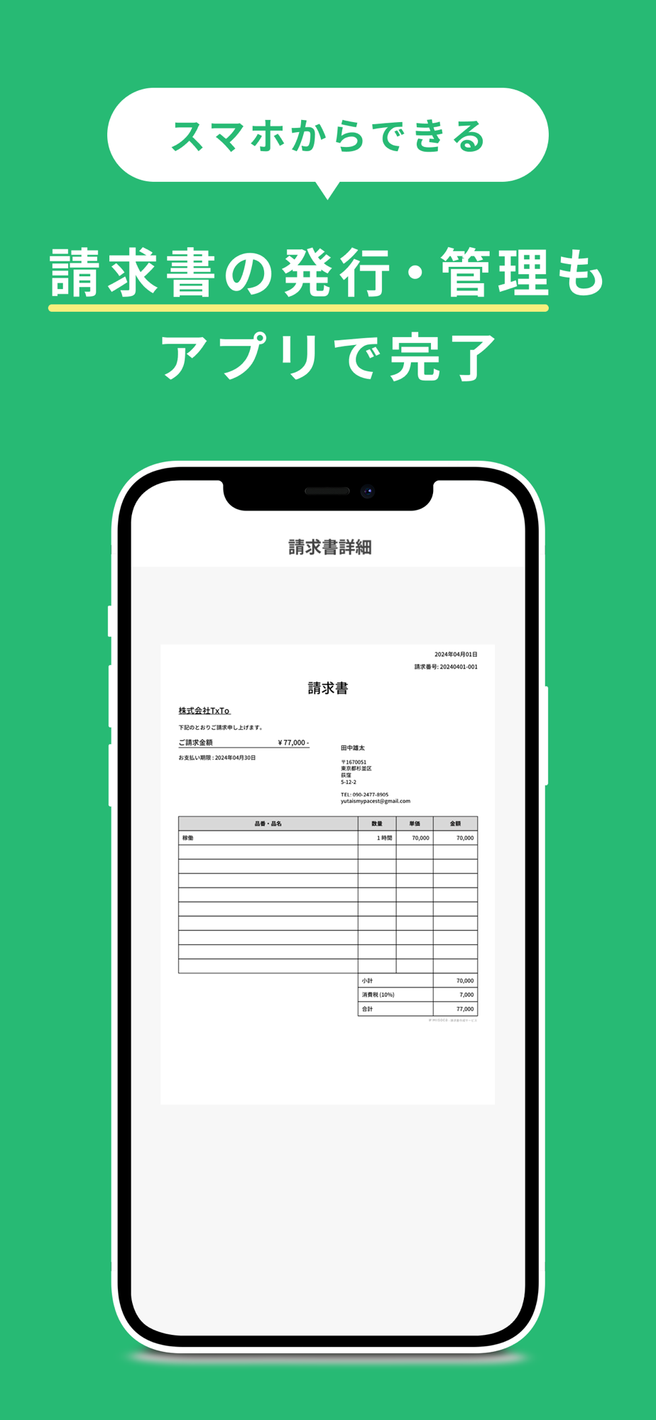 ・請求書もアプリ内で作成・管理できる!ツールの行き来は不要。