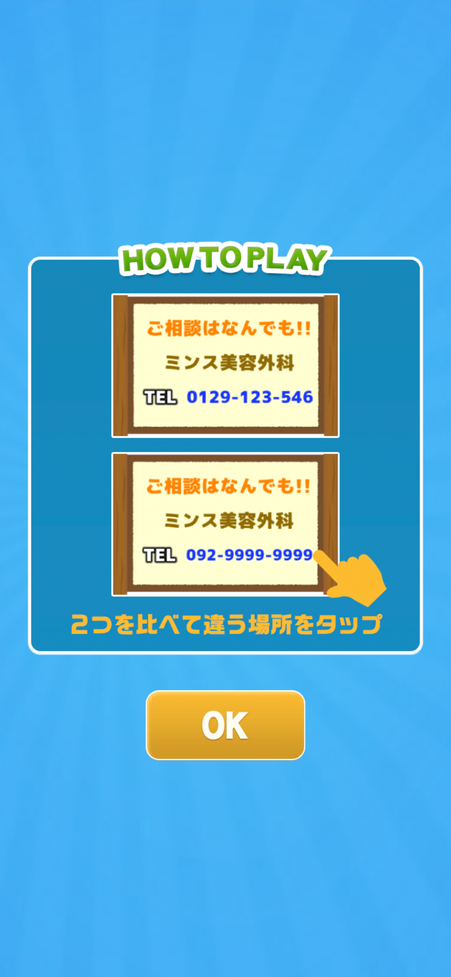 2つの絵を見比べて、違っている箇所をタップするだけ!
