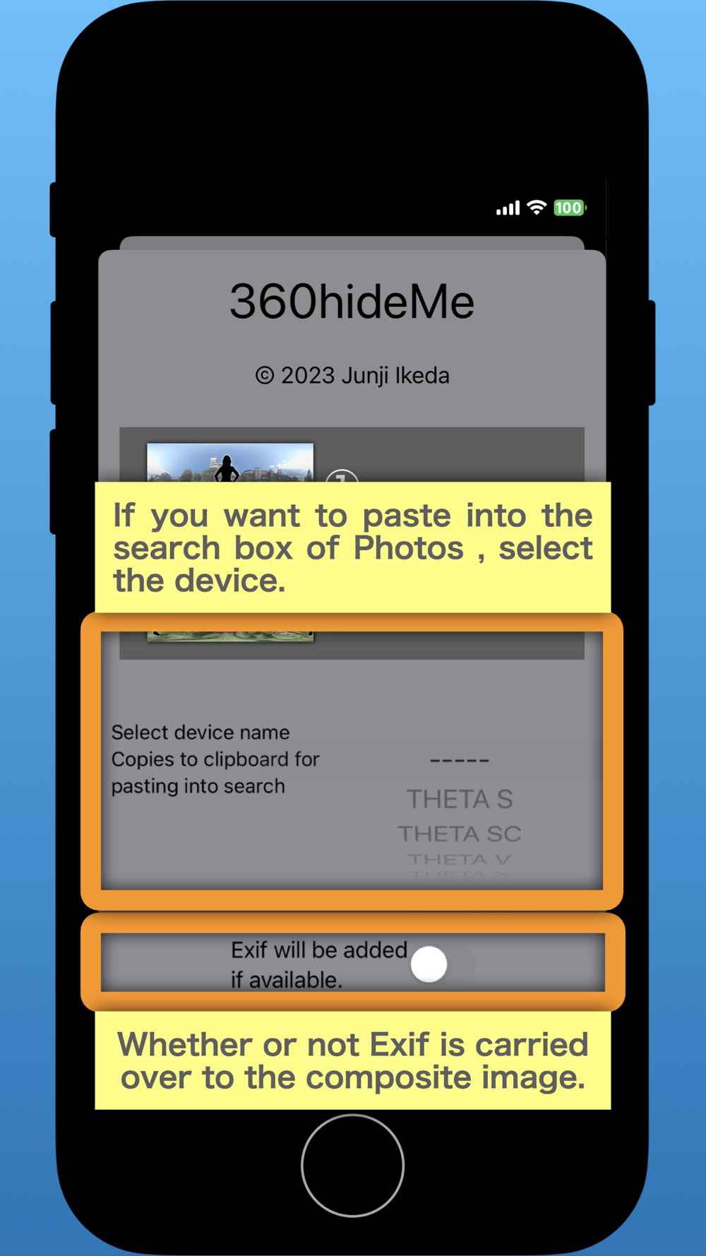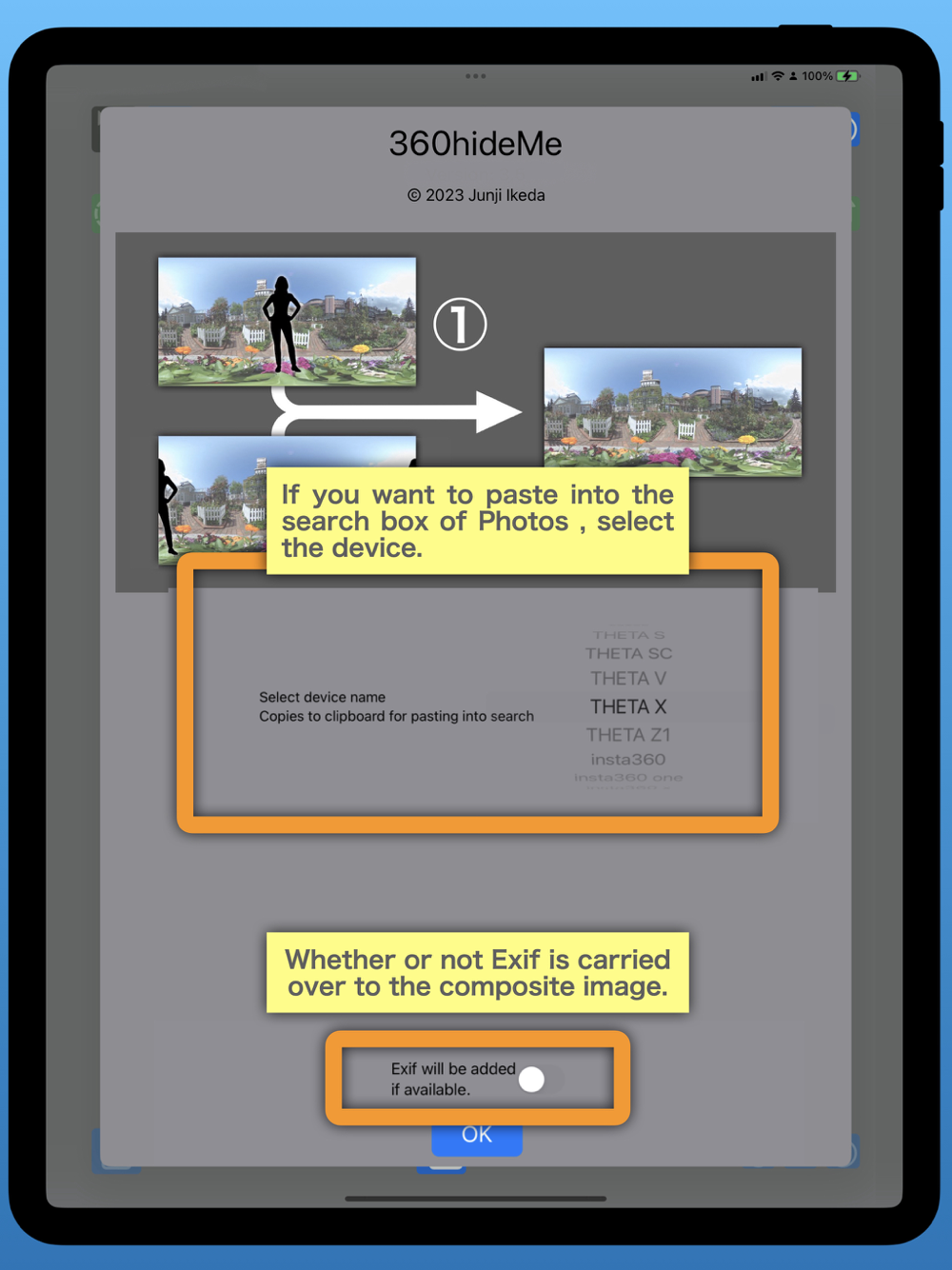 The method of shooting 360-degree images suitable for erasing the photographer with 360hideMe is simple.