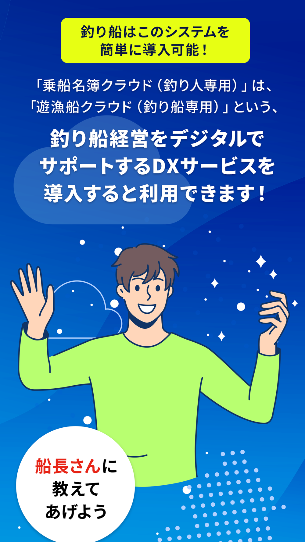 乗船前から、あなたの釣りを快適にサポートする「乗船名簿クラウド」。ぜひ一度お試しください。きっと、釣りがもっと好きになるはずです。