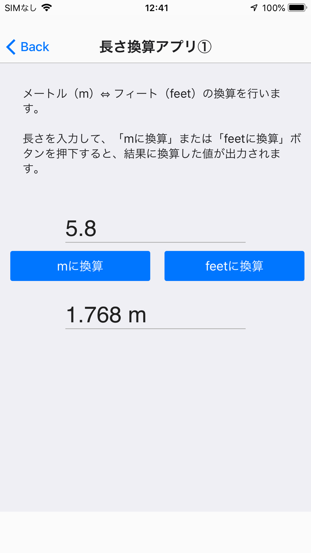 メートル(m)⇔ フィート(feet)の換算を行います。