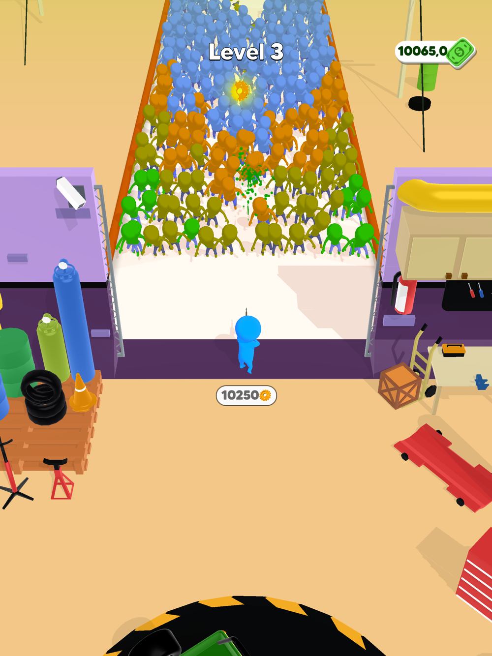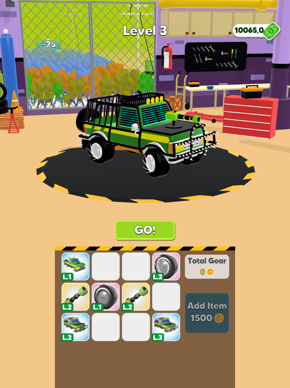 Collect gears while you are running away, merge parts to upgrade your car and hit the gas to smash'em all!