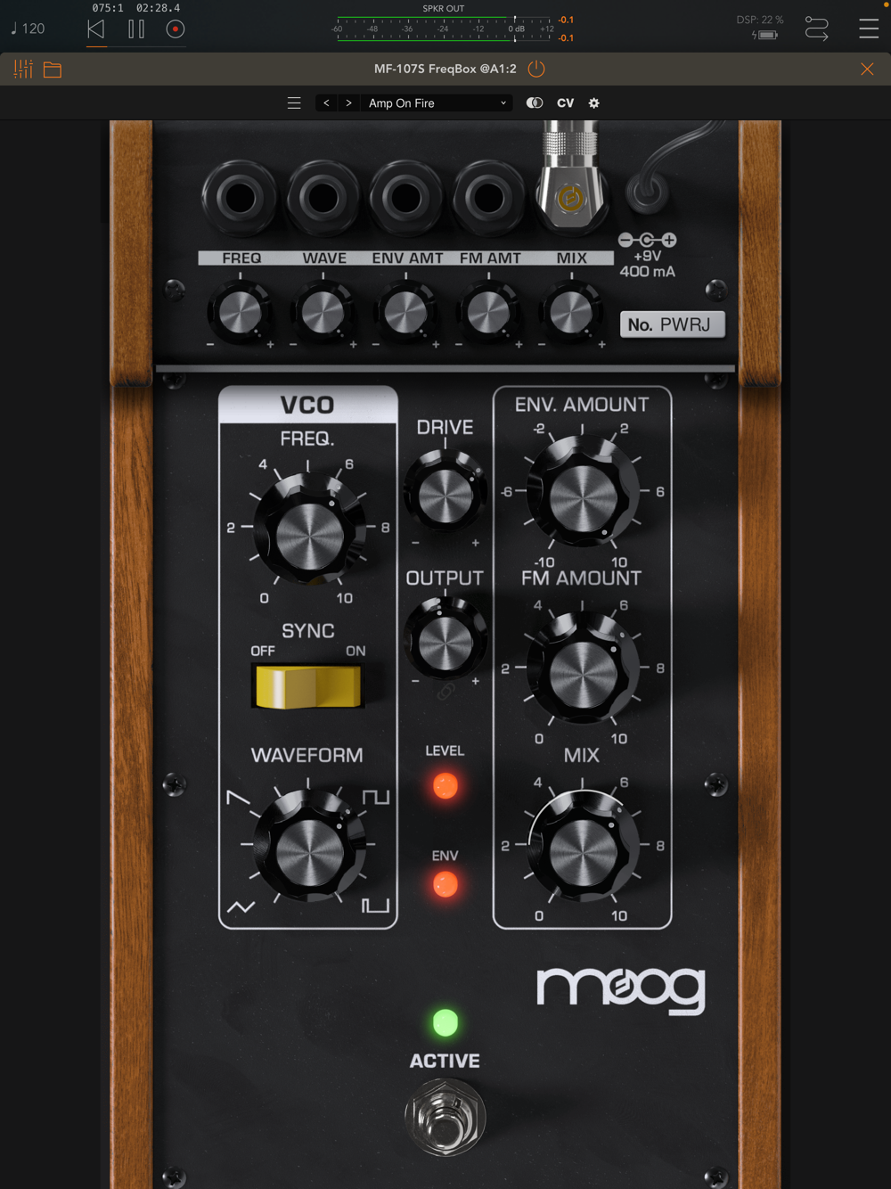 The MF-107 Freqbox, originally introduced in 2007, contained several complete modular synth functions: a voltage-controlled oscillator (VCO) with variable waveshape capable of being hard synced and frequency modulated by the audio input, and an envelope follower which allowed the dynamics of the input signal to modulate the frequency of the VCO. In addition, the amplitude of the VCO was controlled by the dynamics of the input signal, and the VCO could be mixed with the audio input. A direct descendant of the original Moog modular synthesizers, the MF-107 was adapted to process, modulate, and play with inputs ranging from guitar, voice, and synthesizer to any imaginable audio source.