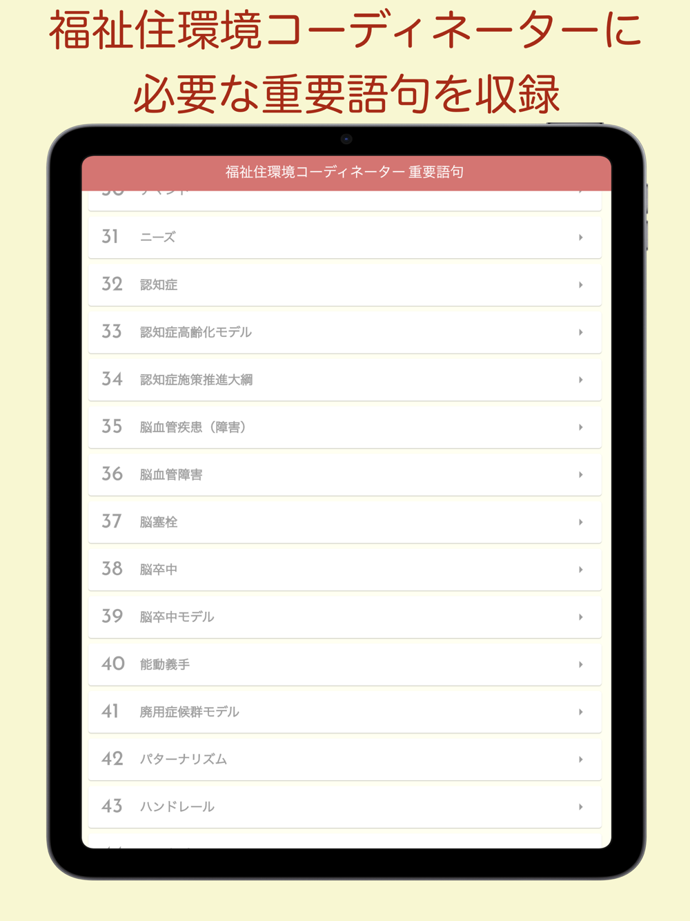 福祉住環境コーディネーターにて必要となる重要語句を収録しています。