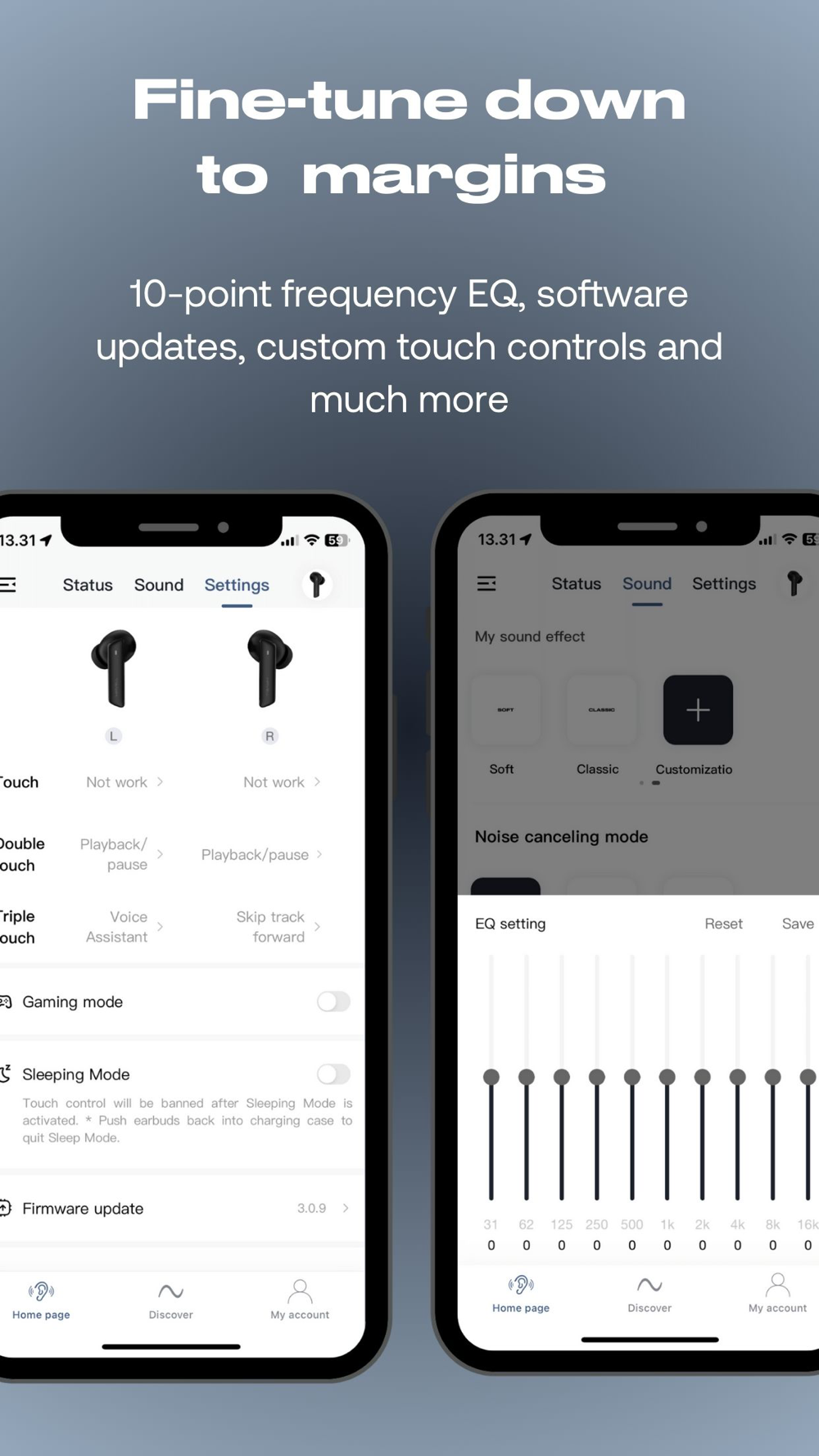 Adjust everything from ANC and Awareness to touch controls, EQ and software updates - all easy and seemlessly!