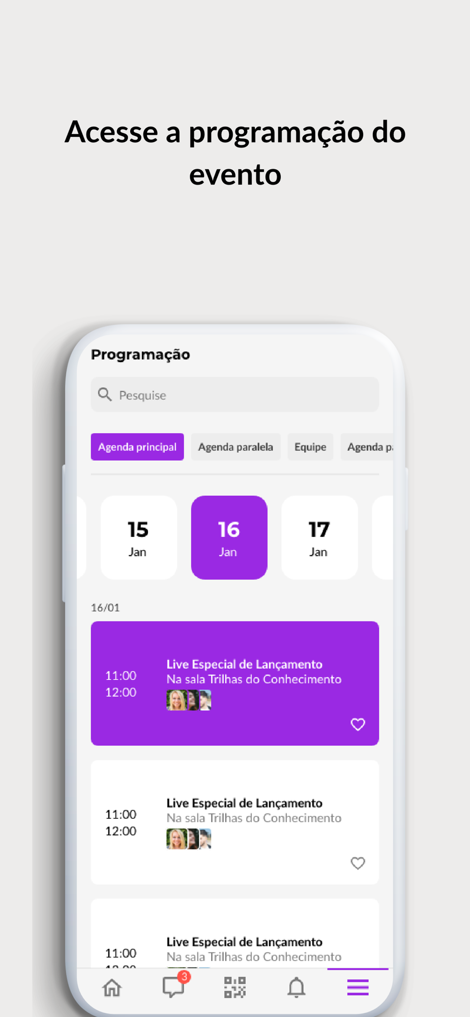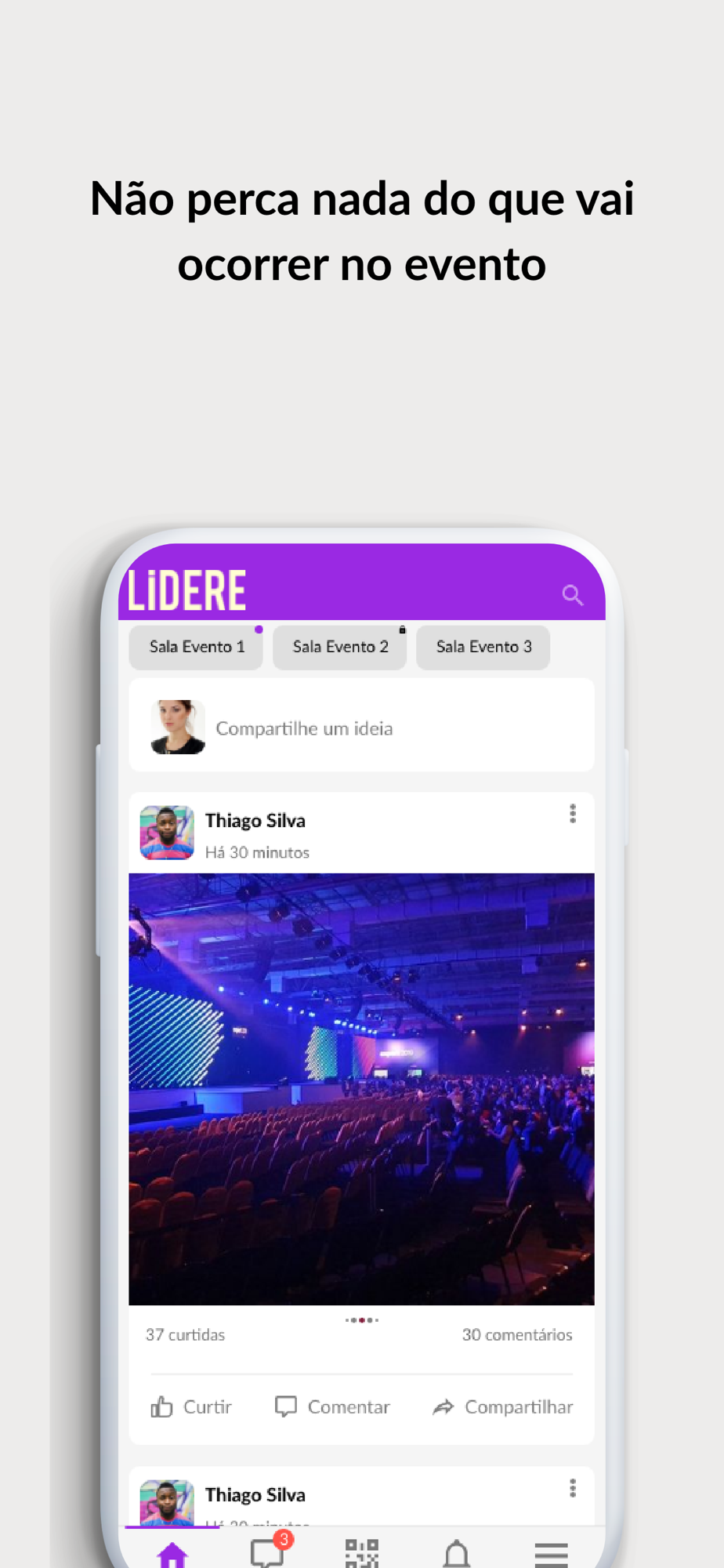“LIDERE 2023”, você tem acesso a uma rede social exclusiva, pode fazer novos contatos, enviar perguntas aos palestrantes, trocar mensagens com outros participantes, enfim, interagir com a comunidade. Além disso, você pode consultar a programação, avaliar conteúdos, dar feedback e responder quizzes. Utilize o APP e aproveite ao máximo os recursos.
