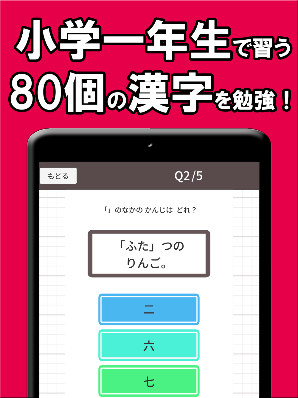 This application is for learning 80 kanji characters of the first grade of elementary school.