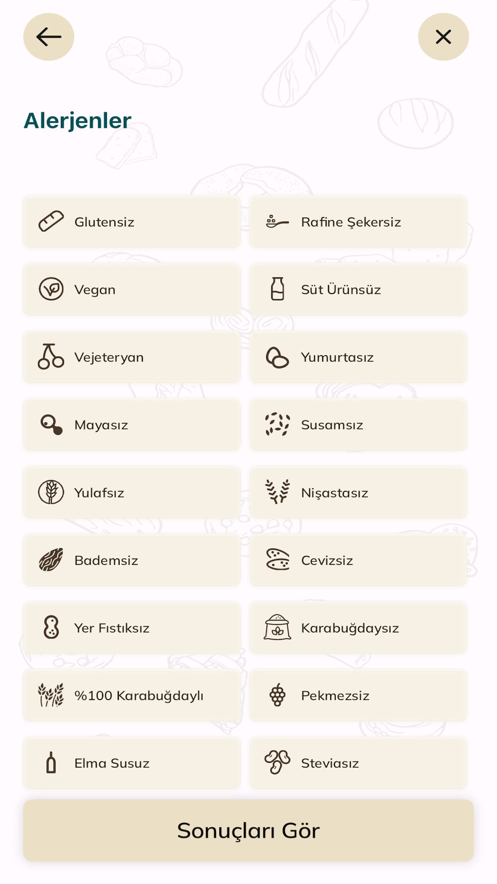Çölyak diyetine uygun, glutensiz, rafine şekersiz, mayasız, nişastasız ürünlerimizi inceleyip, diyetinize uygun olanları seçebilirsiniz.