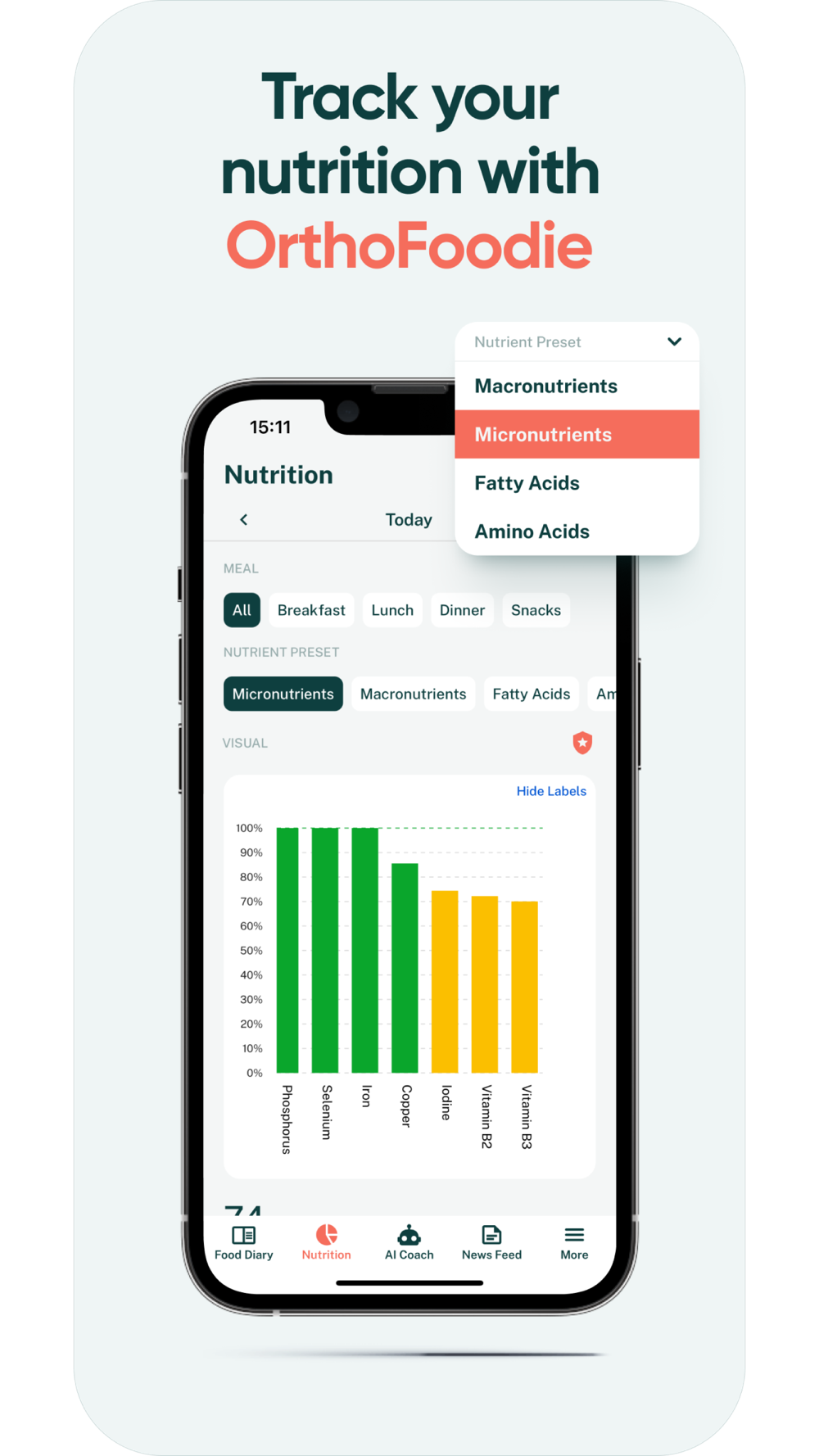 OrthoFoodie redefines the rules, using nutrition to prevent illness, restore balance, and power performance. More than just a calorie counter, OrthoFoodie helps you understand the full picture of your health with advanced nutrient tracking, food scanning, and AI-powered coaching.