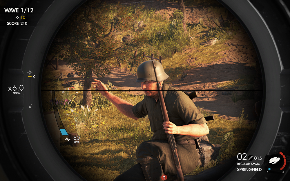 Experience genre-defining rifle ballistics where snipers must take account of wind, gravity, and heart rate to land satisfying shots over hundreds of meters.