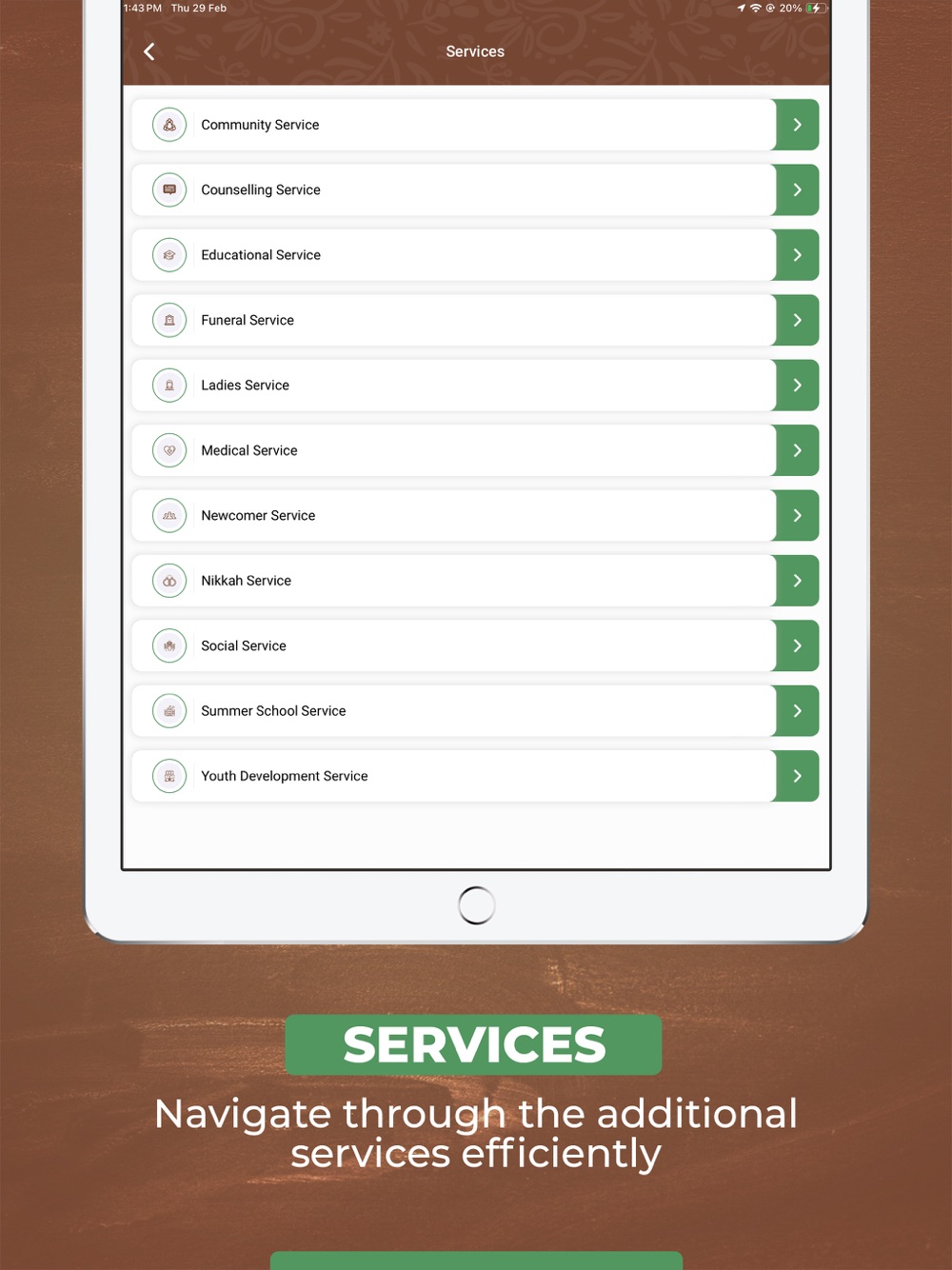 Get current prayer and iqama times. Stay up to date with upcoming events. Use the app to register for events and activities organized by the masjid. Donate using the app for different programs and appeals. This app is a must-have to stay in touch with the local Muslim community.