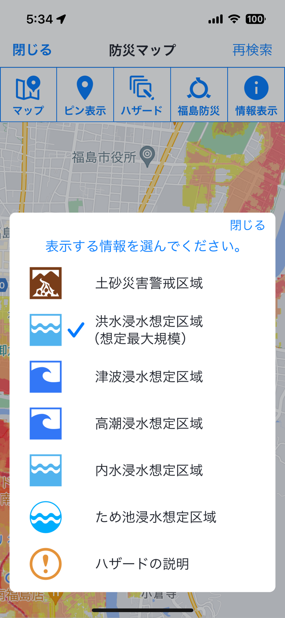 「福島県防災アプリ」は、福島県内だけではなく全国各地で利用でき、地図表示はオフライン時でも利用できます。