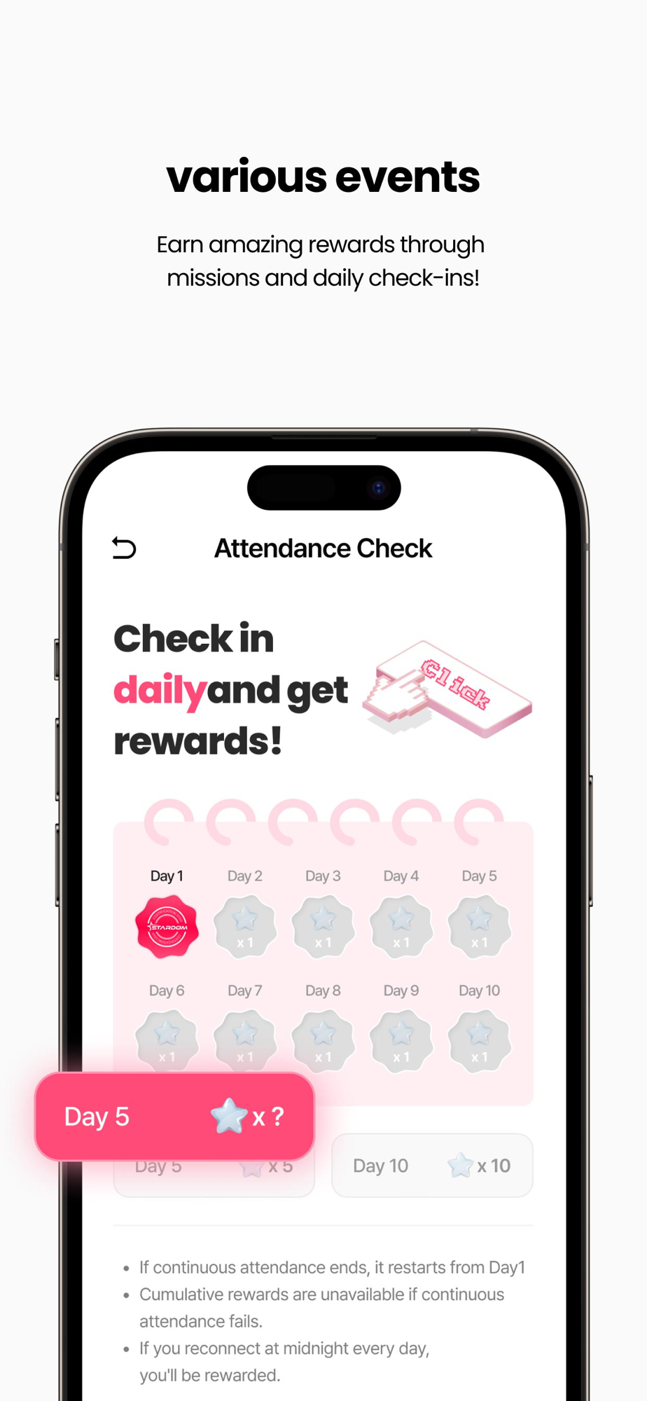 Get rewards with more diverse and new missions and attendance!