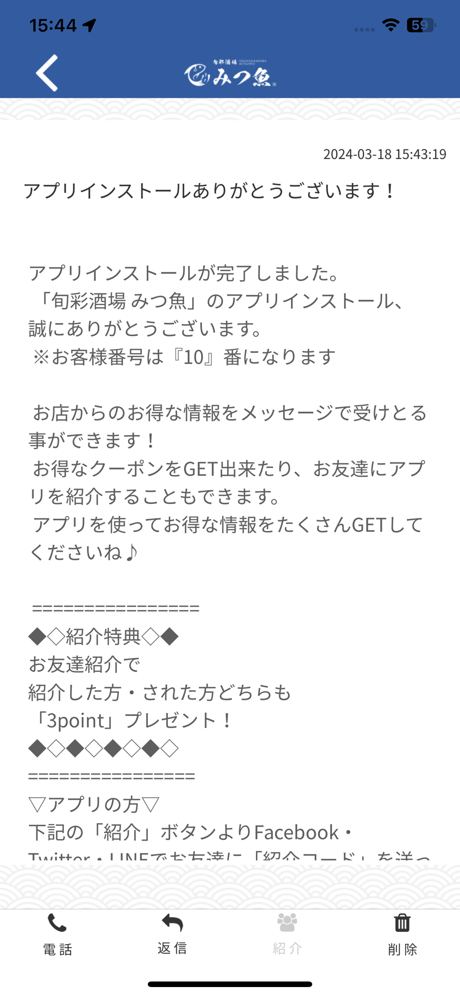 みつ魚のアプリをSNSを通じてお友達に紹介する事ができます。