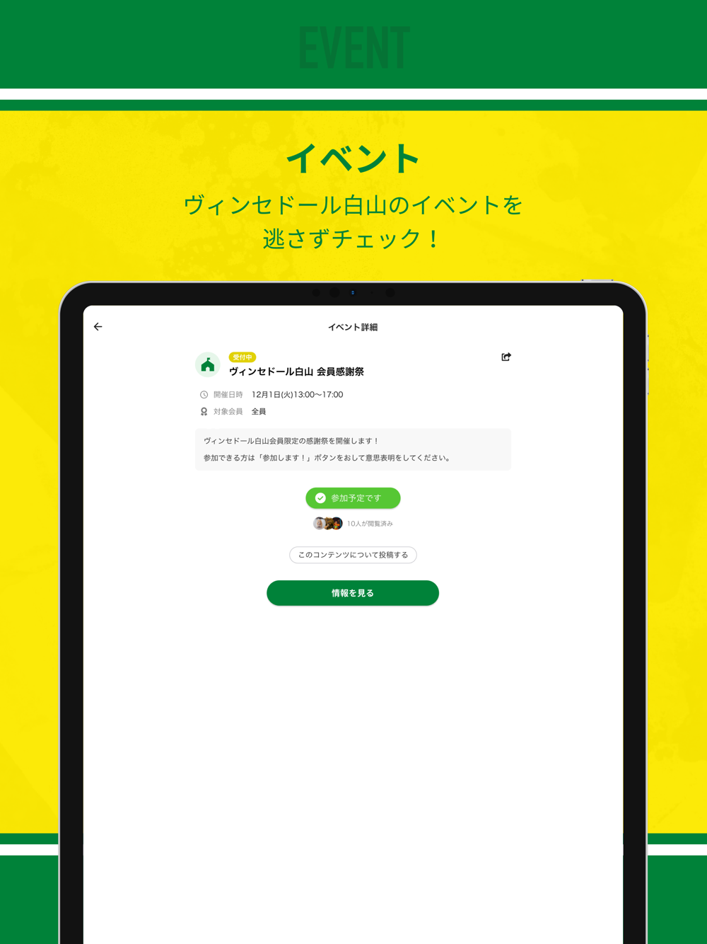 「ヴィンセドール白山をともに歩んでいく仲間」が集まるクラブメンバー限定アプリです。