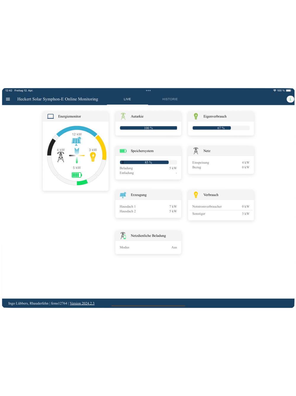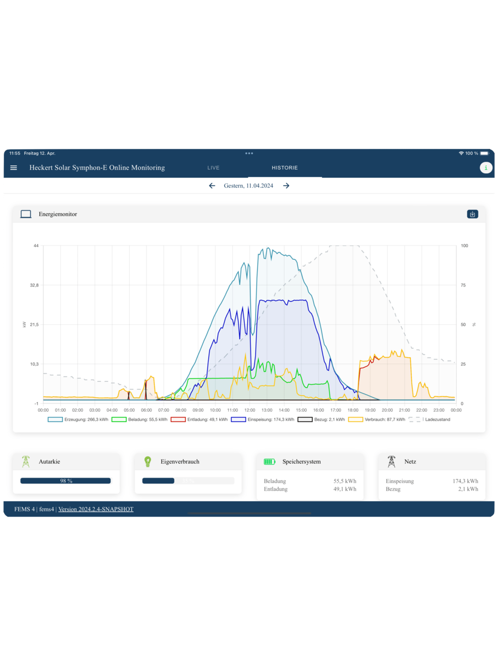 Die kostenlose APP für das modulare Stromspeichersystem Symphon-E von Heckert Solar ermöglicht eine einfache und übersichtliche Überwachung und Steuerung deiner Solarstrombewegungen zu Hause für einen optimalen Autarkiegrad. Die App integriert sowohl deinen Stromspeicher als auch deine Solarstromerzeugung, deine Wallbox, deine Wärmepumpe, dynamische Stromtarife etc. Überwache zu jedem Zeitpunkt den Status deines Gesamtsystems und der einzelnen Komponenten.