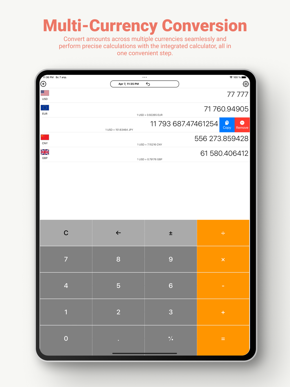 Batch Conversion: Effortlessly convert amounts across multiple currencies in one operation, ideal for multi-country trips or financial planning.