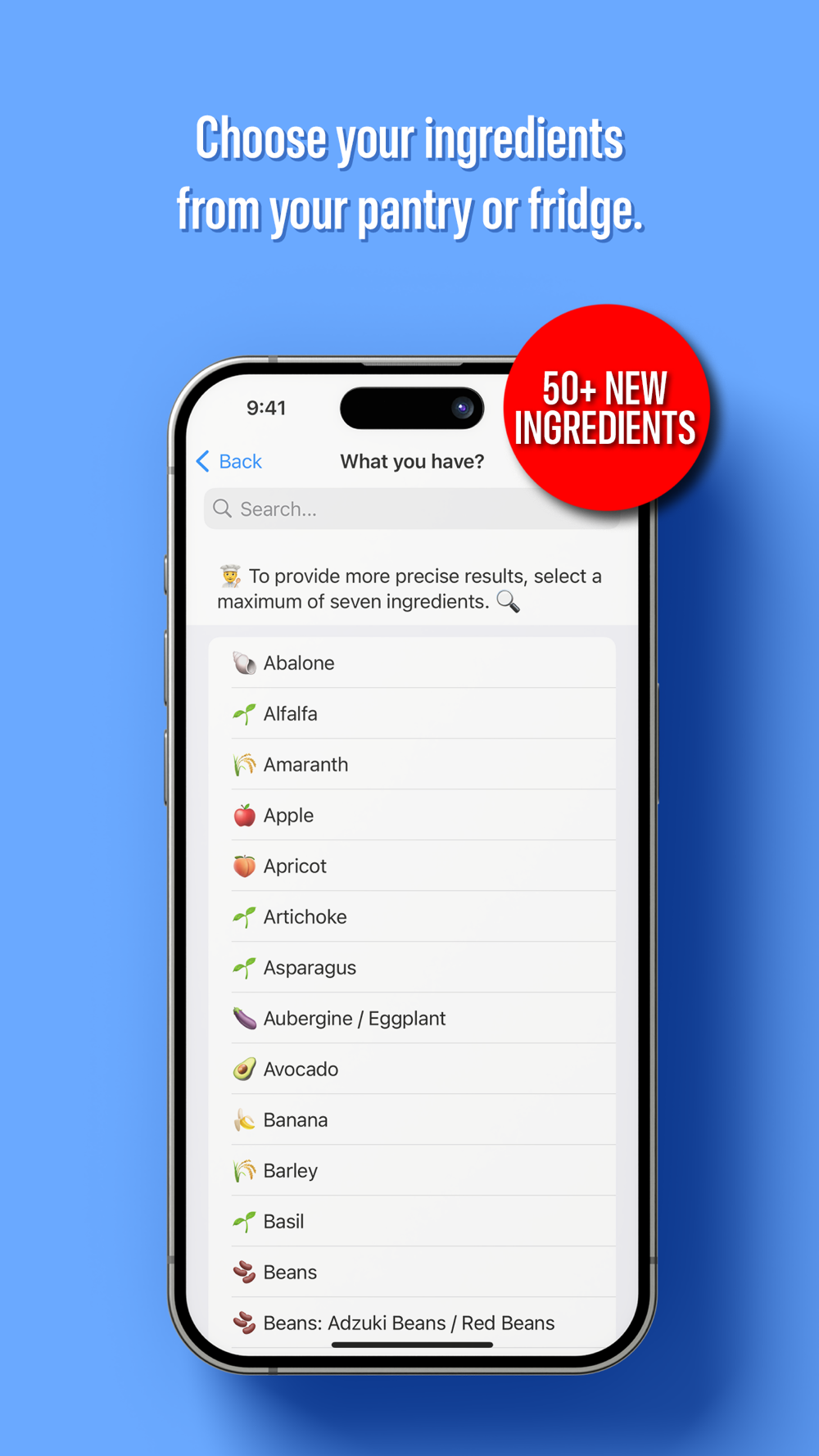 Choose your ingredients from your pantry or fridge. Pentola will use these ingredients to suggest recipes that you can make right now.