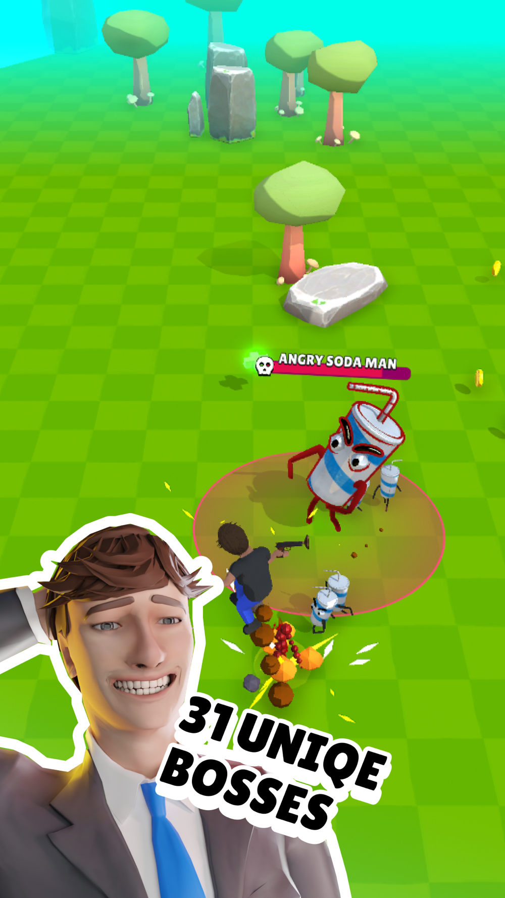 Face daily challenges armed with a variety of hilarious and powerful weapons. Use the Rizz Bow to break your enemies’ hearts, or the Stained Briefs for some messy fun. Customize OkCron with an array of awesome skins and collect upgrades to boost your stats.