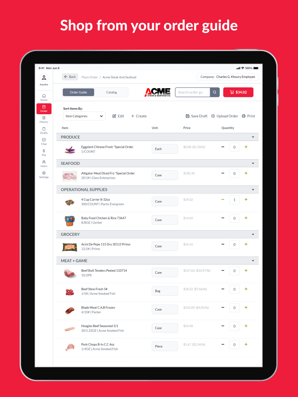 Shop our entire product catalog with item photos and rich attributes including nutritional info