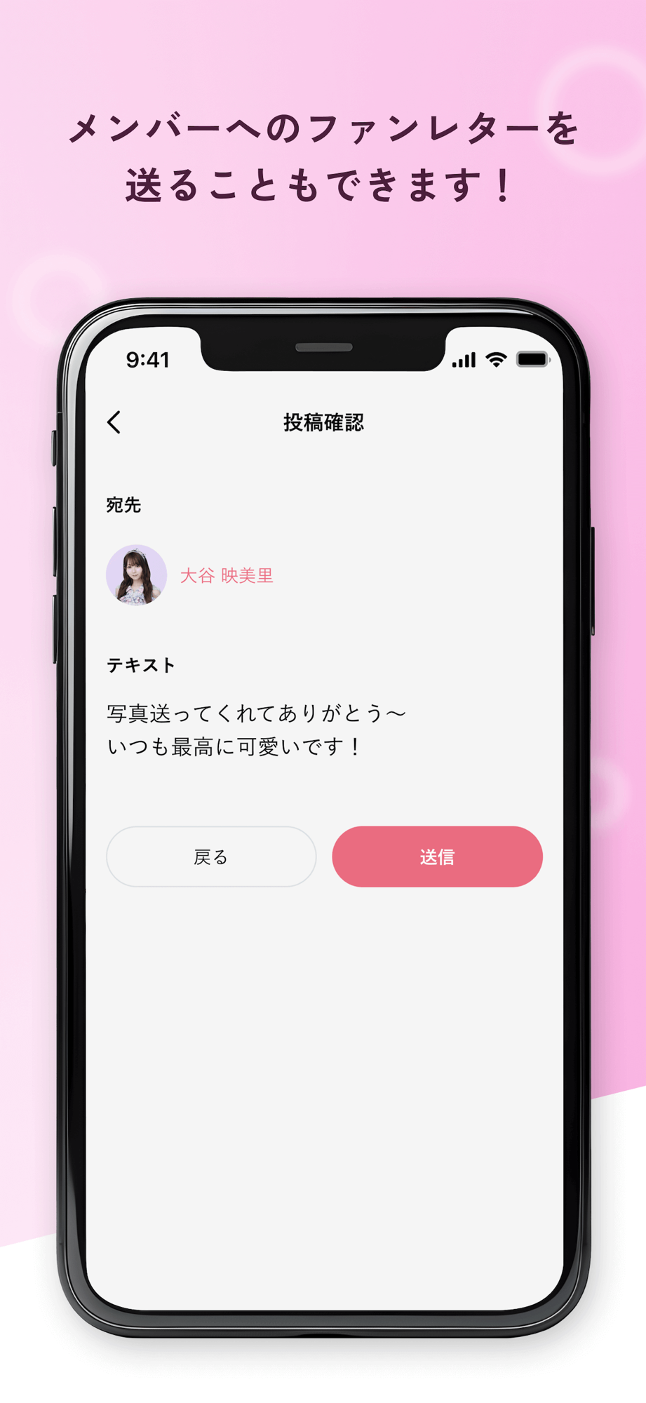 定期購読をしているメンバーへ、アプリからファンレターを送れます。