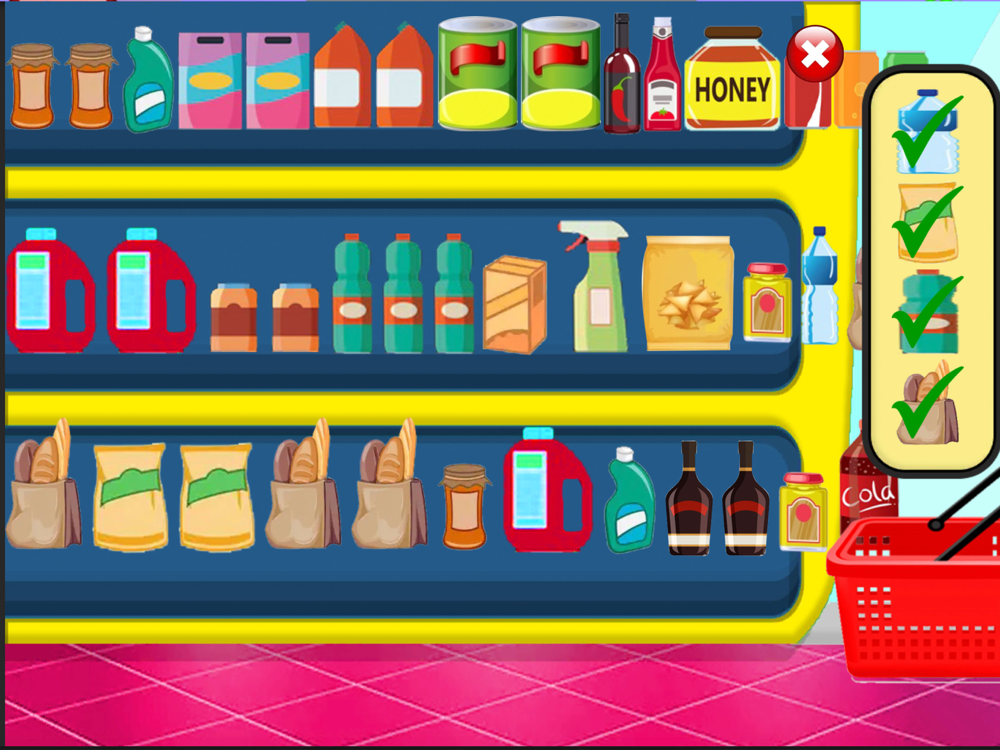 This shopping game includes a cash register, grocery store, breakfast game, meat market, food zone, vegetable shop, fruit shop, toy shop, candy, and many other store games!