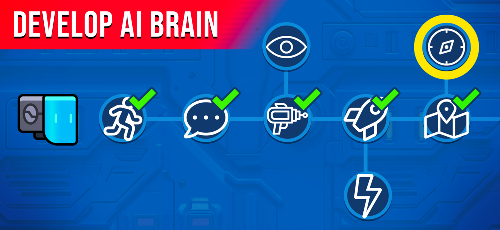 - Train your AI robot to grow its intelligence and skills.