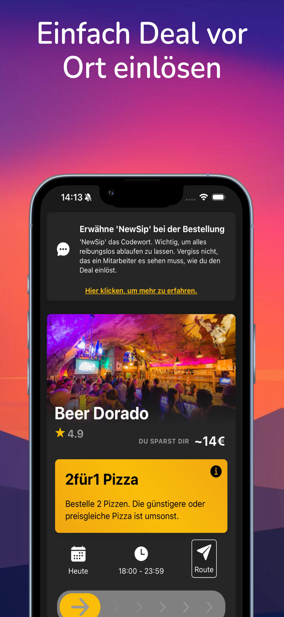 Lade NewSip jetzt herunter und tauche ein in eine Welt voller spannender Angebote, cooler Orte und neue Leute!