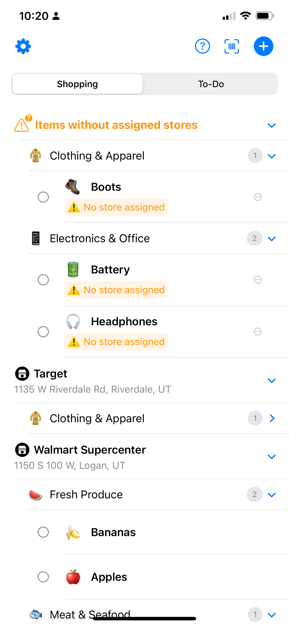 • Organize items by store and category