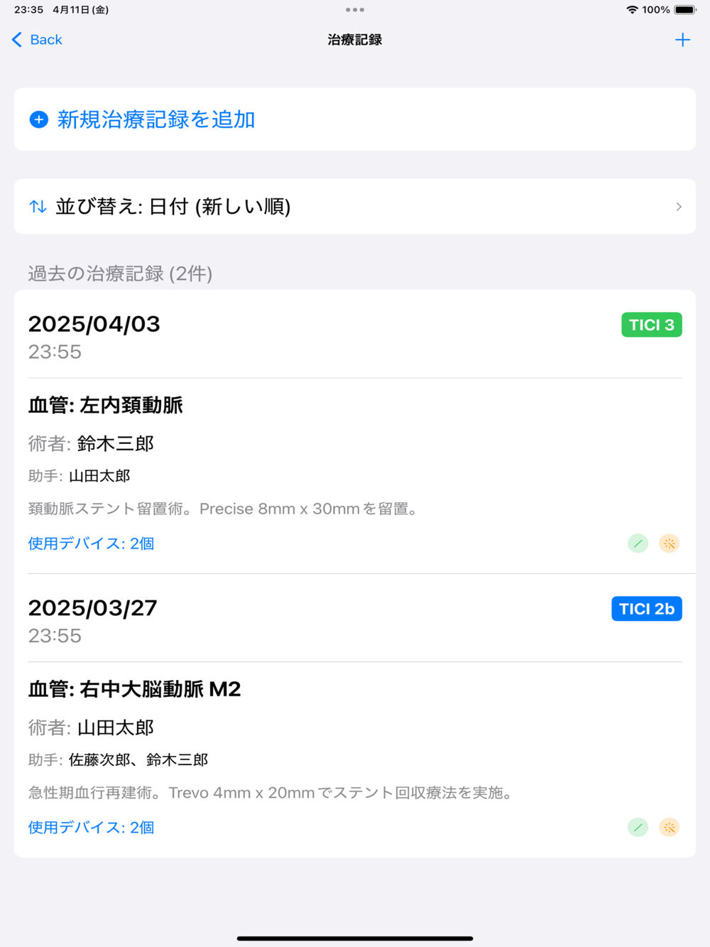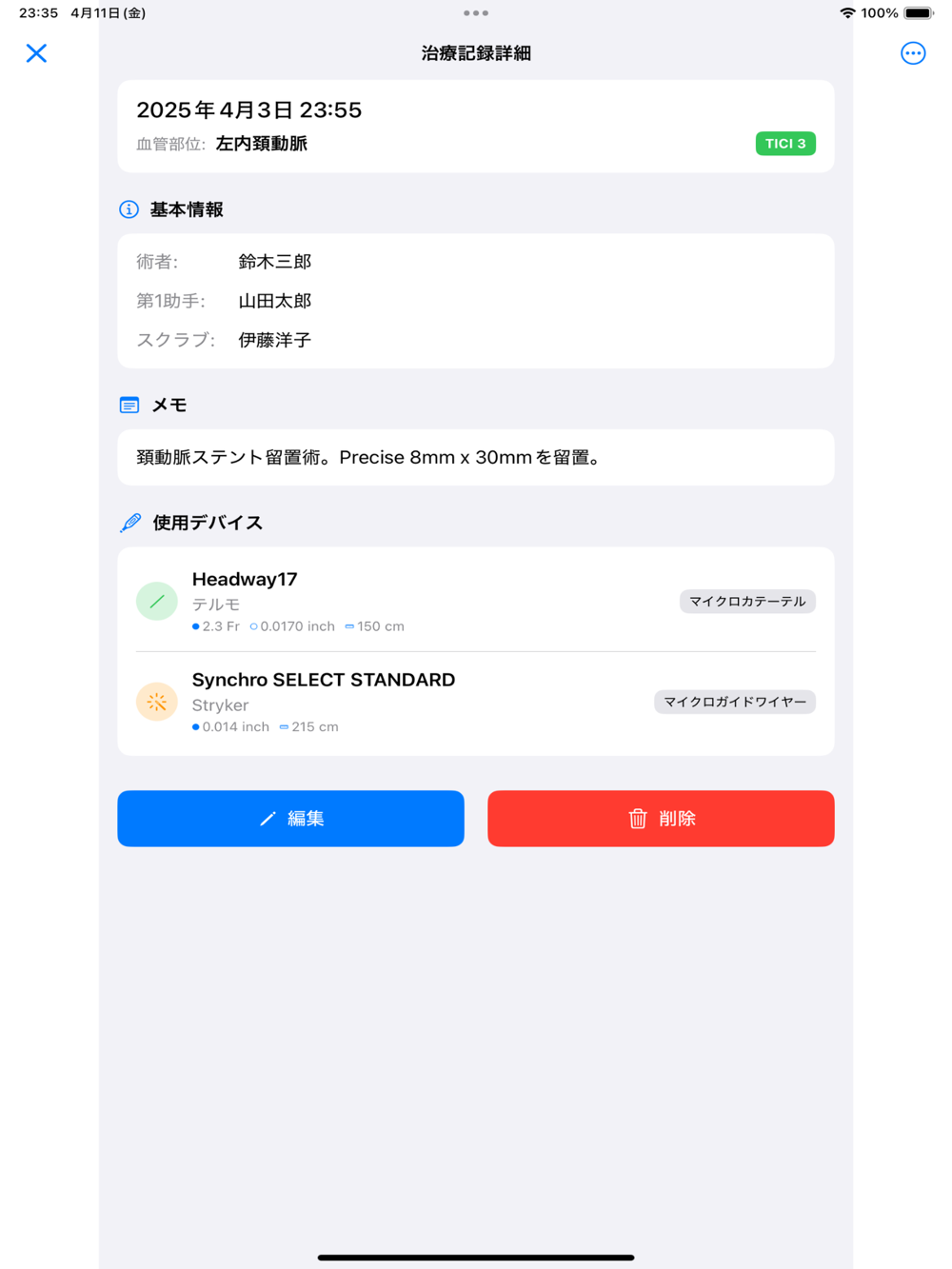 「デバイスの長さや径が多すぎて覚えられない」「どの施設でどの症例に何を使ったかの記録が曖昧になりがち」——そんな現場の“あるある”を解決するために開発しました。