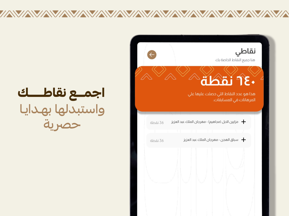 من خلال تطبيق البوش، تقدر تشارك إبلك في أقوى المزادات، وتنافس بمقاطع الريلز المصورة، وتصوت للنياق الأجمل، وتكسب نقاط مع كل تفاعل. النقاط تقدر تستبدلها بخصومات أو هدايا قيمة داخل التطبيق.