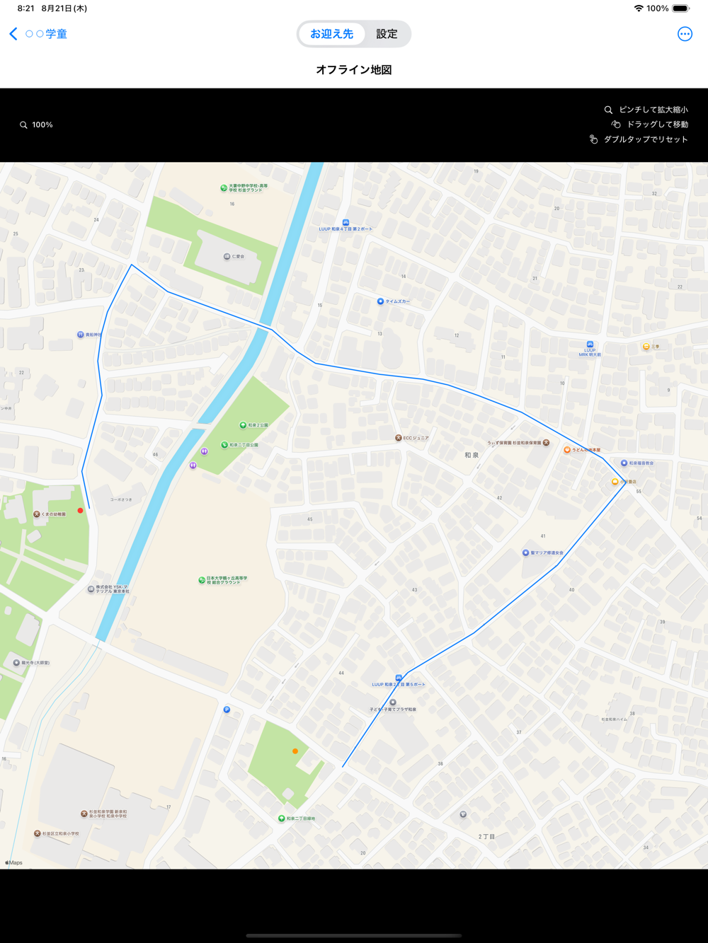お迎え先を登録しておけば、オフラインでも地図が見れるので、急いでいる時も、電波がない場所でも迷うことはありません。