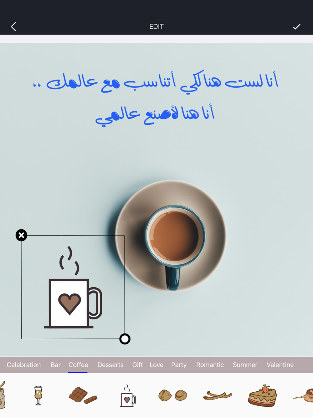 يأتيكم الآن باصداره الجديد بواجهة جميلة و تصميم مميز .يتضمن التطبيق العديد من الخطوط العربية المميزة و المختارة بعناية ، يوفر التطبيق إمكانية الكتابة على الصور و إختيار الخطوط و الألوان، إضافة للملصقات و الخلفيات الجاهزة لعمل أفضل التصاميم .