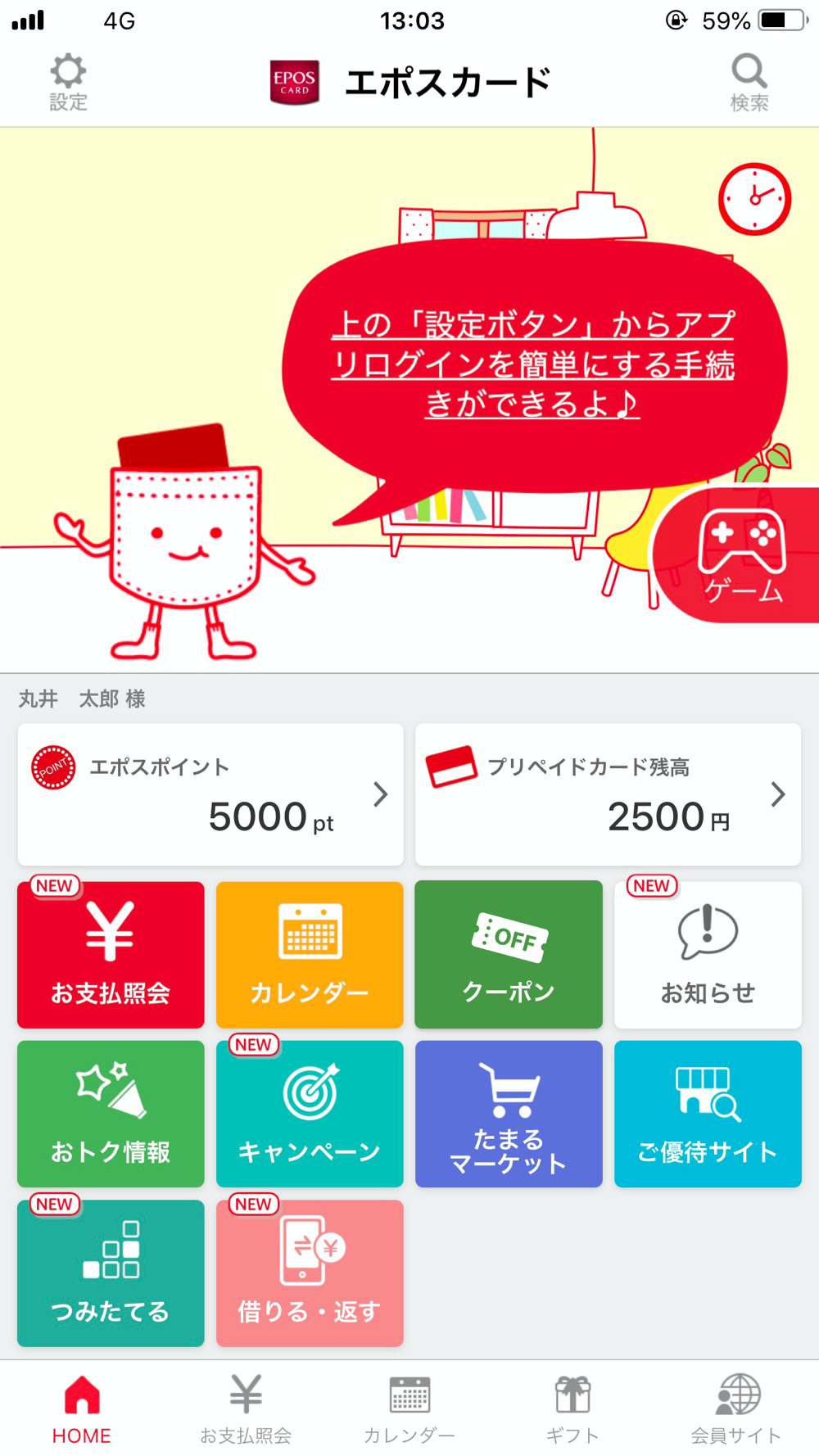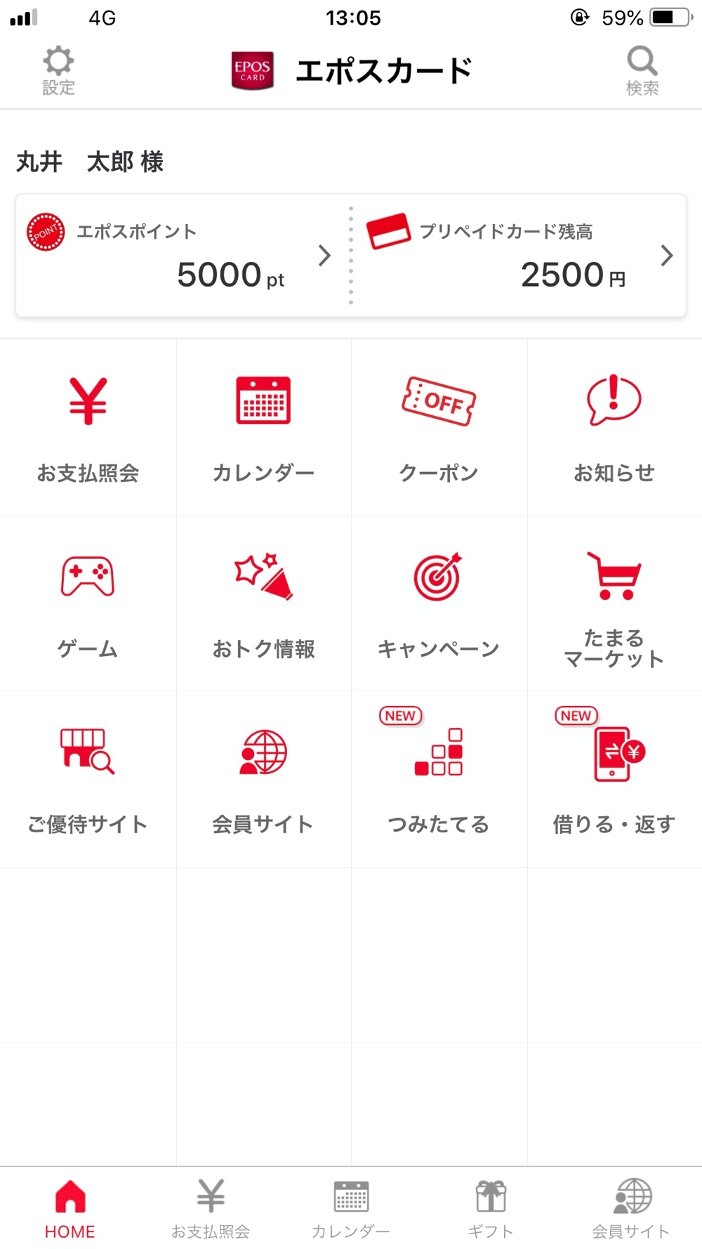 エポスカード会員サイト『エポスNet』の主な機能がご利用いただけます。